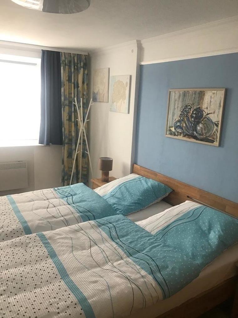 Das Schlafzimmer ist mit einem Doppelbett (2 Einzelmatratzen, jeweils 2 m x 0,90 m), einem Kleiderschrank und einem weiteren TV ausgestattet.
