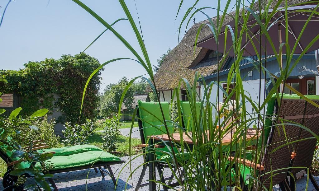 Die Außenanlage begeistert durch sein großes Naturgrundstück, dass gemeinschaftlich genutzt werden kann. Freue dich beispielsweise auf den Gartensitzplatz am Boddenufer, auch ein Bootsanleger ist vorhanden. Somit besteht die Möglichkeit für eine Anreise mit eigenem Segelboot. Dir steht ein PKW-Stellplatz auf dem Grundstück zur Verfügung. Außerdem gehört zur Ferienwohnung eine Terrasse mit Terrassenmöbel und zwei Gartenliegen.