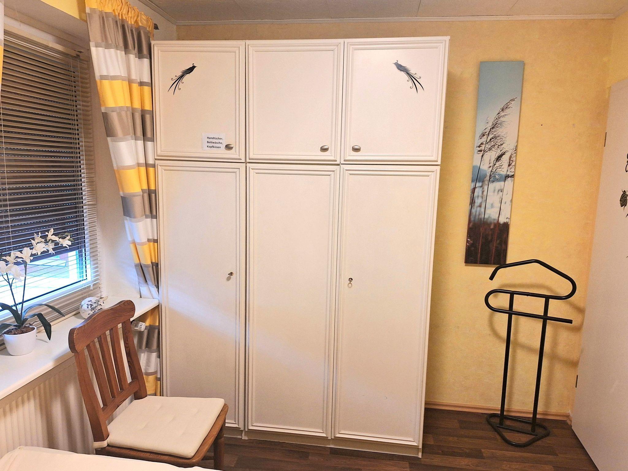 1 Schlafraum und 1 Wohnraum, 2 Einzelbetten, Schlafsessel, viel Schrankplatz, mit Außenrolladen