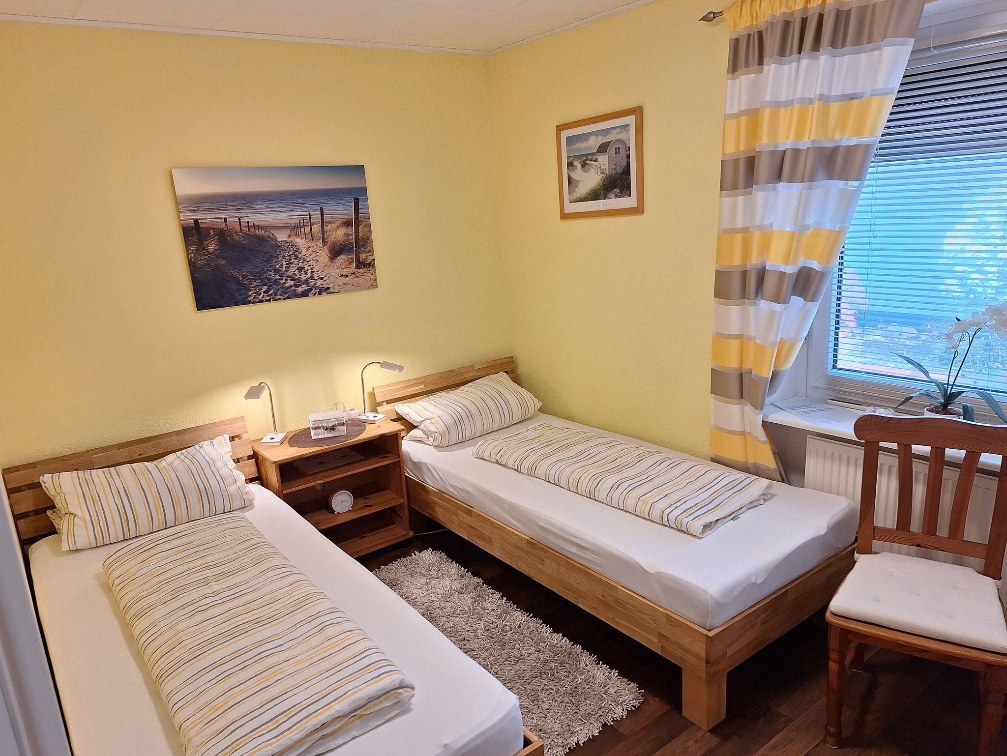 1 ruhiges Schlafzimmer mit 2 Einzelbetten, Fenster mit Rollladen,