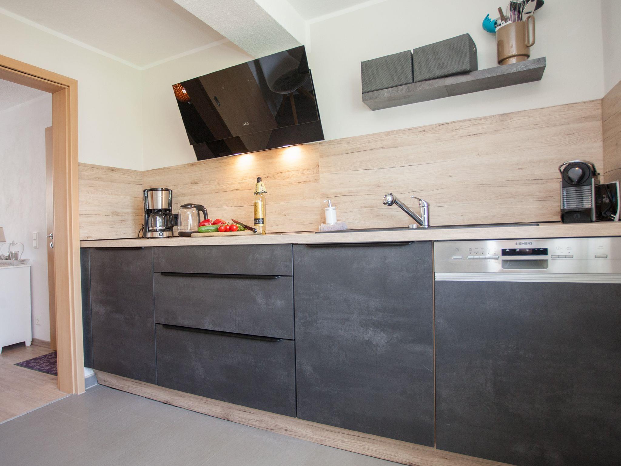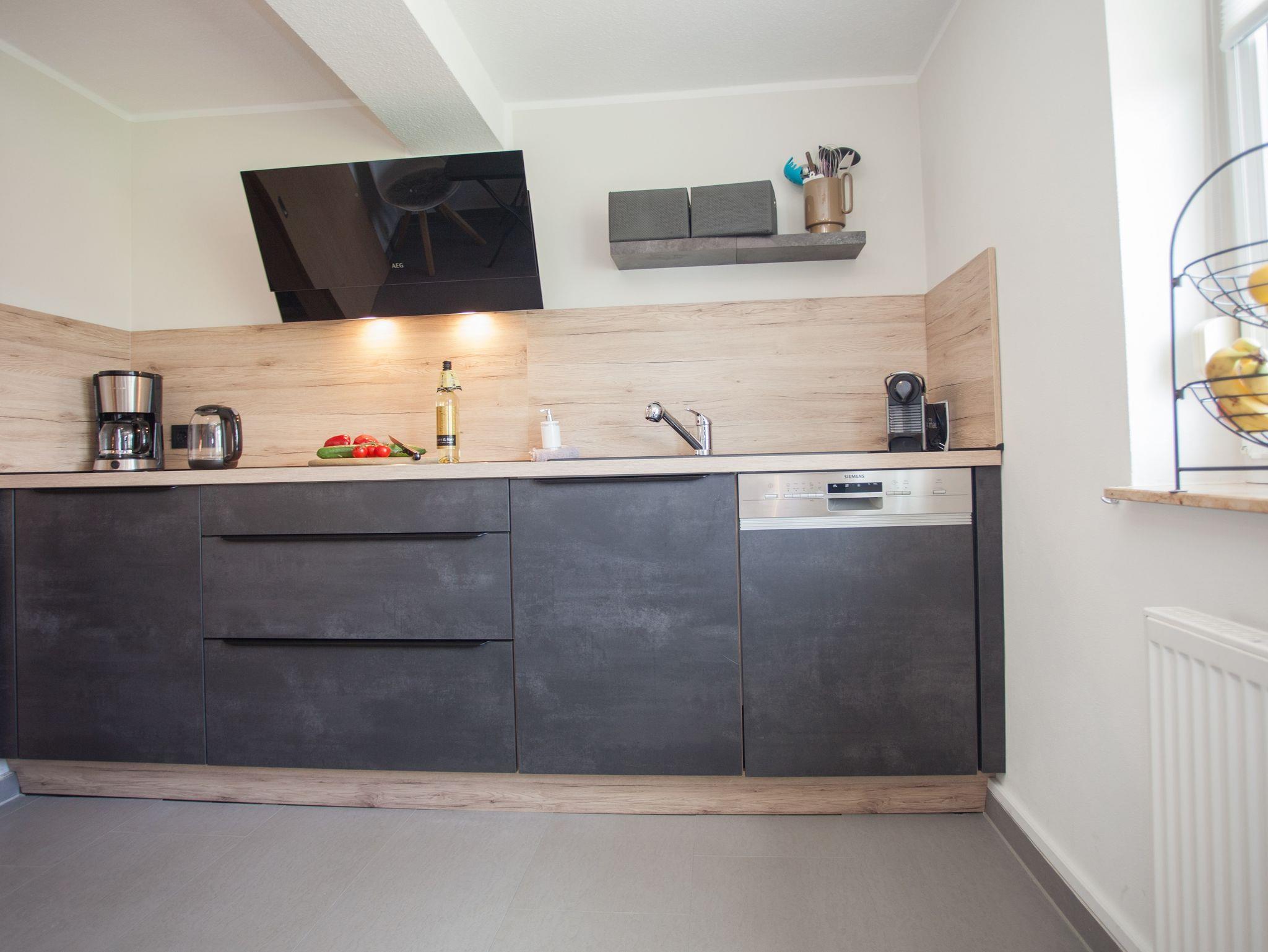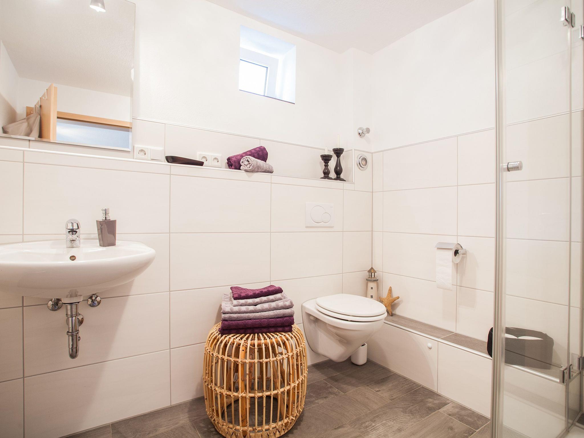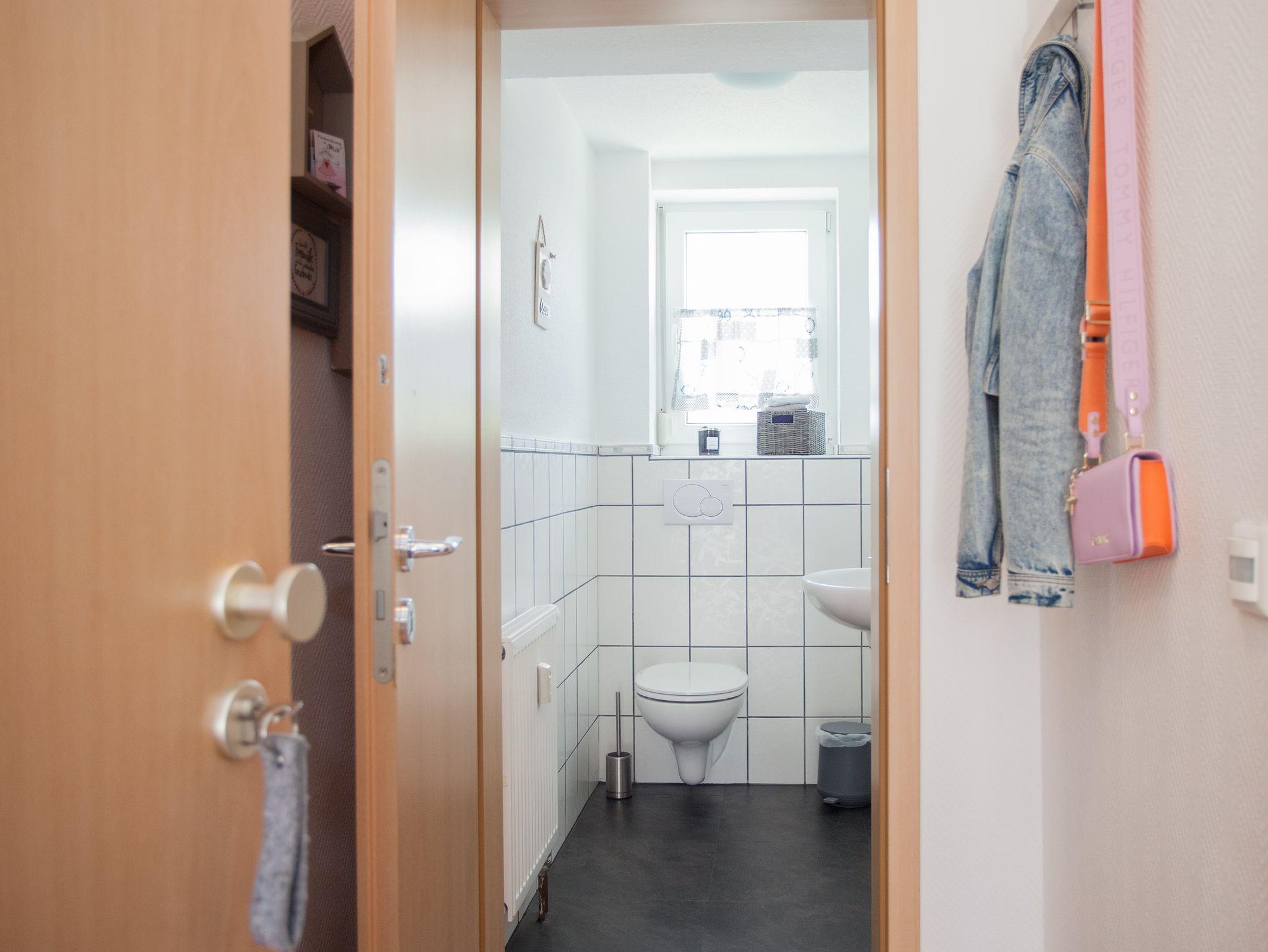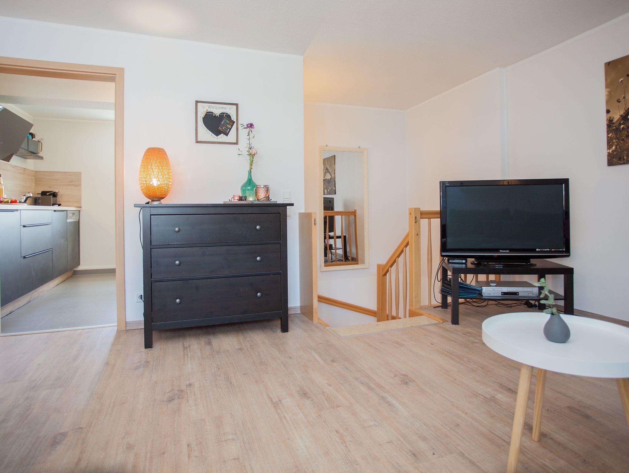 Der Eingang ist im Erdgeschoss, dort befindet sich ein kleines Gäste WC, die Diele, das großzügige,modern eingerichtete Wohnzimmer mit ausziehbarer Wohnlandschaft und die seperate, komplett eingerichtete, hochmoderne Küche. Essgelegenheiten sind in beiden Räumen vorhanden.Im Soutterain befindet sich eine Abstellkammer, das Schlafzimmer mit übergroßem Bett, sowie ein Flachbild TV, Safe und ein modernes Badezimmer mit Dusche. Auf Wunsch kann ein Kinder/Babybett zugestellt werden. Außerdem kann bei Bedarf ein Babyphone, eine Babybadewanne, eine Wickelauflage und ein Hochstuhl kostenlos mitgenutzt werden. Steckdosensicherungen sind vorhanden. In jedem Raum sind Fenster zum Öffnen und Verdunkeln. PKW Stellplatz vorhanden.Gartennutzung erwünscht.