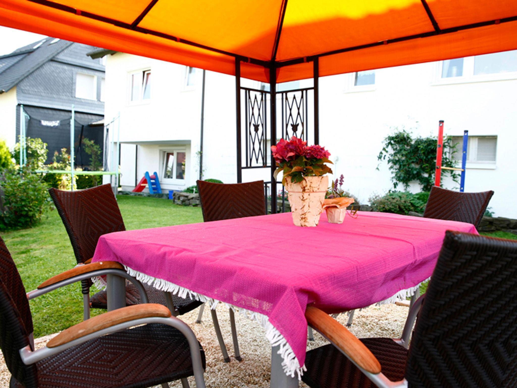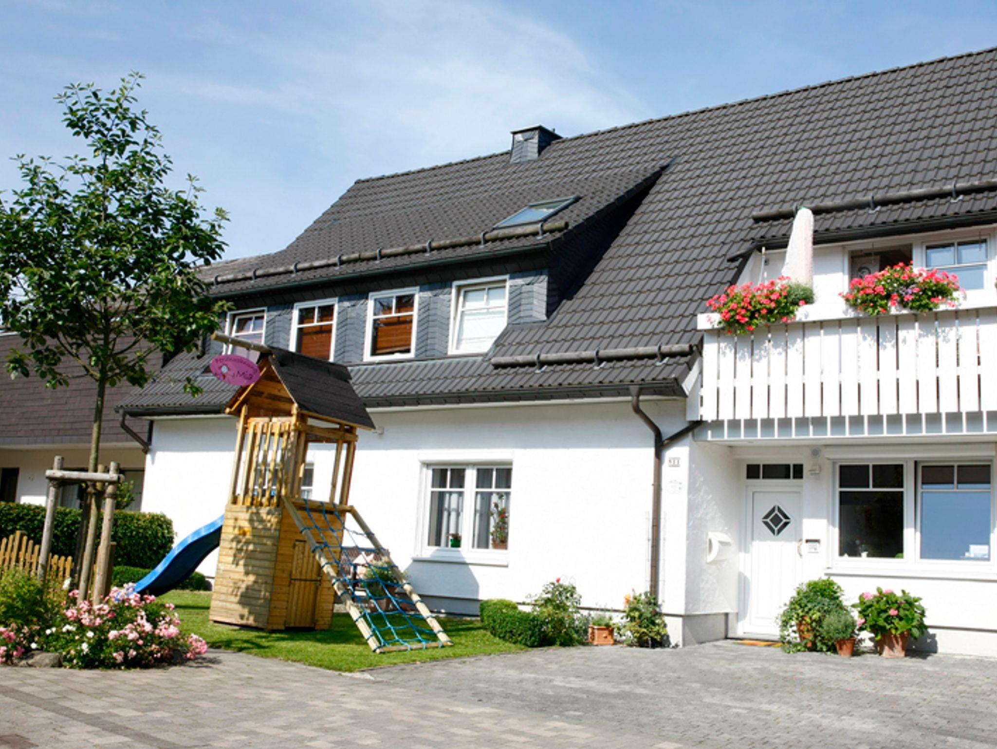 Gemütliche, 60 qm große, kinderfreundliche, allergikergeeignete, zentrumsnahe Ferienwohnung in Waldrandlage mit direktem Einstieg zu den schönen Winterberger Bergwiesen. Die FEWO liegt in einer sehr ruhigen Wohngegend. Die Stadt ist zu Fuß in 5 Min. und das Skigebiet in 10 Min. zu erreichen. Durch die unmittelbare Nähe zum Waldgebiet wird Ihnen der Zugang zu vielen Wander- und Radfahrwegen in wenigen Minuten ermöglicht. Im Garten des Hauses lädt eine Lounge und zwei gemütliche Sitzbereiche zum Verweilen ein. Gartenmöbel, Trampolin Grill, Holzschlitten, Schlitten, Bob/Rutscheteller können kostenlos mit genutzt werden.