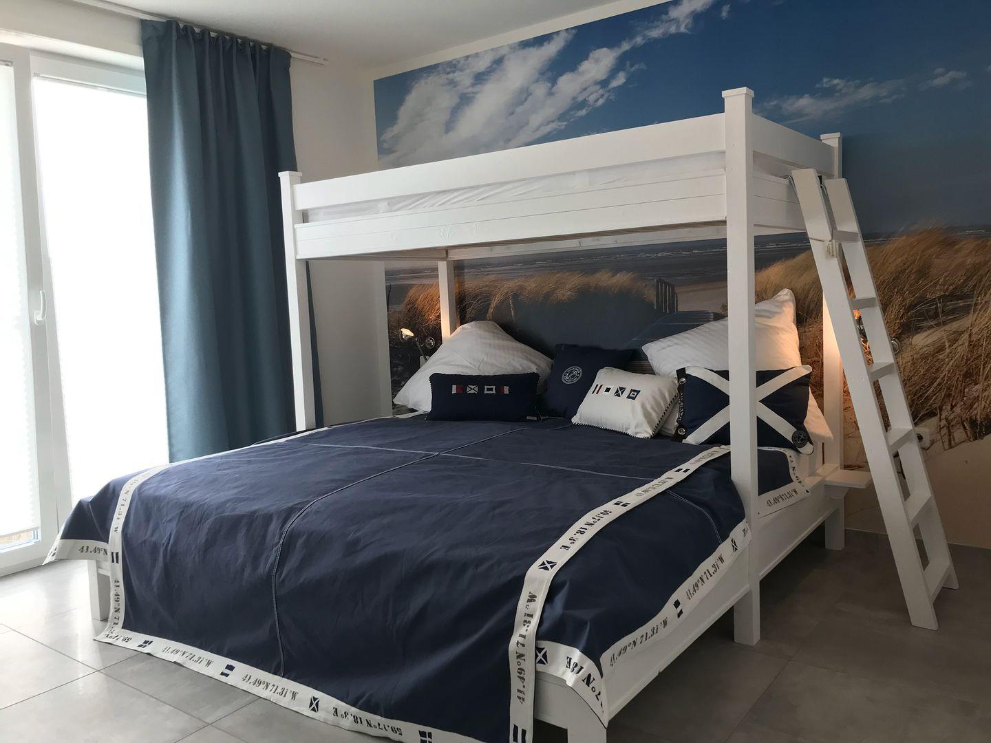 Die Ferienwohnung *Weiße Düne 3 / OceanView* im Erdgeschoss des Hauses *Weiße Düne* in Wittdün auf Amrum ist eine 3-Zimmer-Ferienwohnung (ca. 93 qm Grundfläche) mit Schlafmöglichkeiten für 2 bis 5 Personen. Kostenfreie Nutzung des Fitnessstudios sowie der Sauna des „Eilun Fit“ in Norddorf.