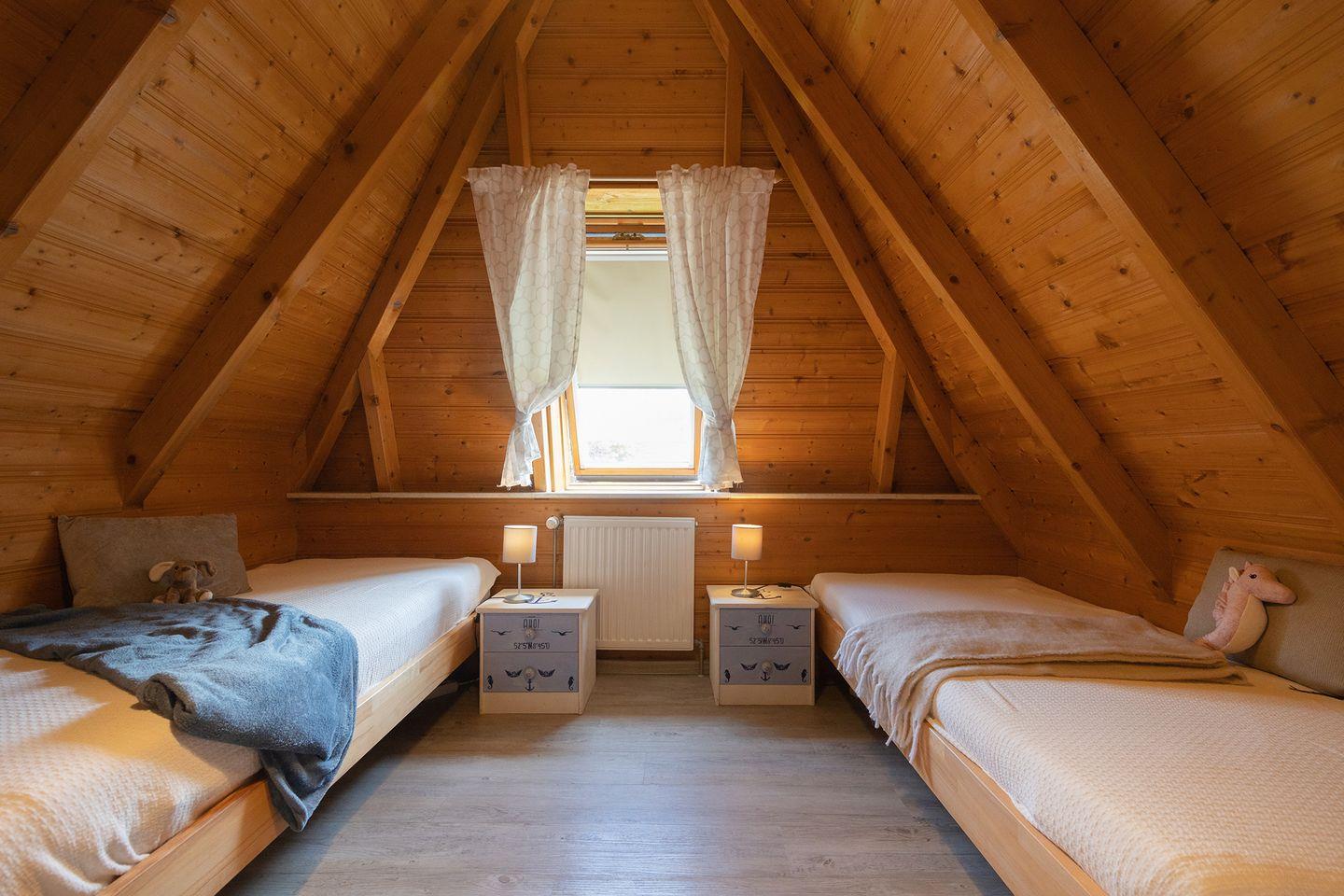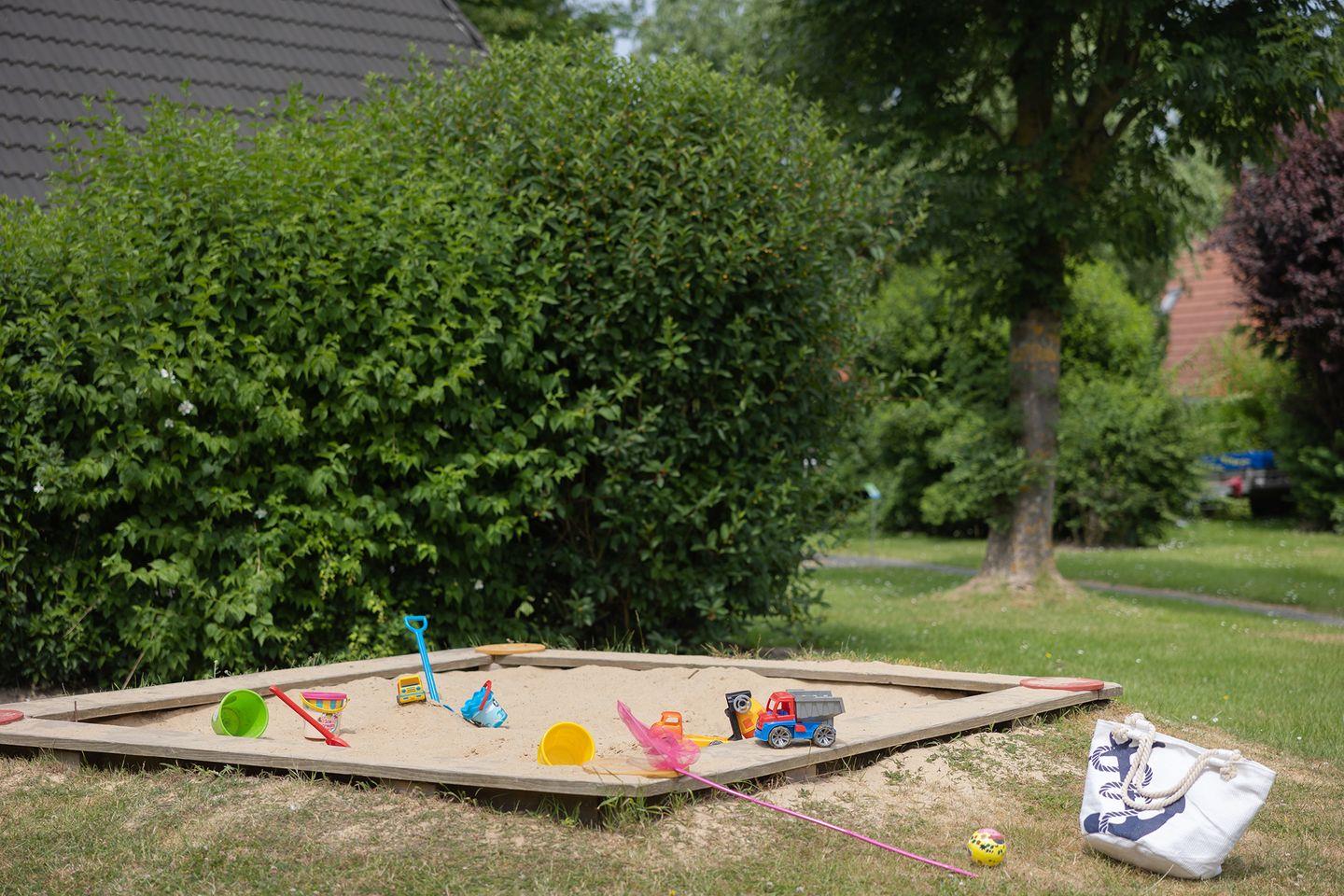 Auf 85 qm gibt es viel Platz für bis zu sechs Personen: ein Elternschlafzimmer, zwei Kinderzimmer – davon eines im Erdgeschoss – sowie zwei WCs und ein modernes Bad mit Dusche und Waschmaschine. Die Schlafräume lassen sich verdunkeln und sind mit pflegeleichtem Laminat ausgestattet. Draußen lädt eine uneinsehbare, möblierte Terrasse zum Spielen und Entspannen ein.
