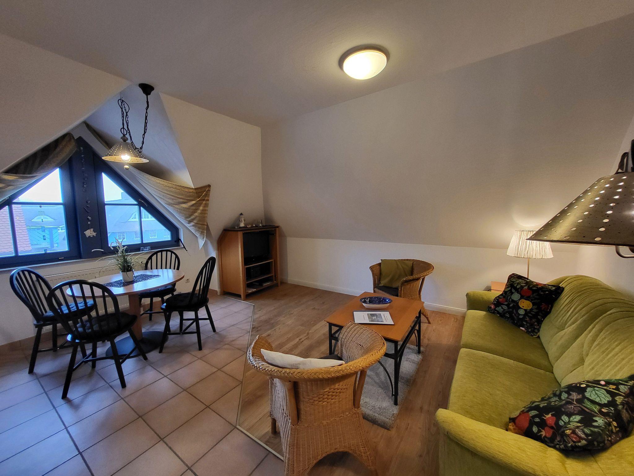 Die Ferienwohnung befindet sich im Dachgeschoss mit einer Grundfläche von ca. 36 qm, mit Seeblick zur Ostsee und der Seebrücke. Das Wohnzimmer ist mit einer Schlafcouch, SAT- TV, kostenlosem WLAN und teilweise Fliegengitter ausgestattet. In der offenen Küchenzeile finden Sie einen Geschirrspüler , Mikrowelle, Cerankochfeld, Kühlschrank mit Gefrierfach und den Essbereich. Im separaten Schlafzimmer ist ein Doppelbett 1,80 x 2,00 m (getrennte Matratze) und ein zusätzliches TV- Gerät, sowie teilweise Fliegengase vorhanden.Die Wohnung wird inclusive Bettwäsche übergeben, Handtücher können über die Zimmervermittlung dazu gebucht werden für 6,00 € pro Handtuchpaket (1 Badetuch, 1 Handtuch). Das mit Dachfenster ausgestattete Bad verfügt über eine Dusche/ WC und Fön. Der Parkplatz Nr. 36 befindet sich direkt vor dem Haus. Eine externe Terrasse steht Ihnen am Haus zur Verfügung, oder genießen Sie einfach den Sonnenuntergang im Strandkorb am feinsandigen Strand, welcher kostenlos für Sie bereitsteht (wetterbedingt Mai- Oktober). Haustiere sind nicht gestattet, da es sich um eine Allergikerwohnung handelt. Alle unsere Wohnungen sind Nichtraucherwohnungen.