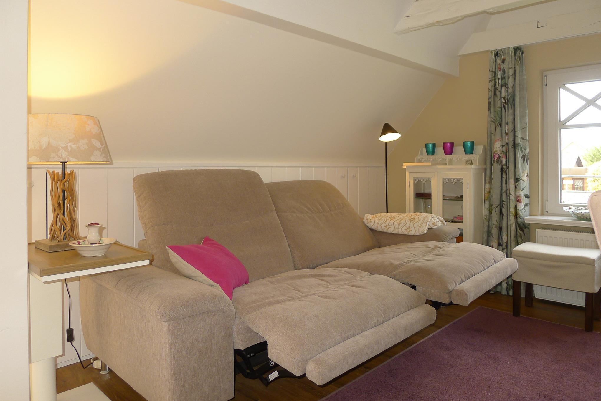 Erleben Sie Ihr persönliches ?„Inselglück?“ mitten in Wyk, in dieser liebevoll und hochwertig eingerichteten Wohnung. Mit nur wenigen Schritten holen Sie morgen die Frühstücksbrötchen vom Bäcker, ein paar Schritte weiter lockt schon der Strand und das Meer. Der Sandwall mit seinen Geschäften, Cafes und Restaurants ?- alles wartet von Ihnen entdeckt zu werden. Die Wohnung, mit separatem Eingang, wird Sie begeistern. Ein besonderes Highlight ist sicherlich der große Balkon mit 25 qm. Von hier haben Sie einen traumhaften Blick über die Dächer und Gärten. Morgens starten Sie den Tag schon mit einem Frühstück auf dem Balkon und am Abend können sie den Sonnenuntergang beobachten. Sollte das Wetter mal nicht für ?„open Air?“ geeignet sein, machen Sie den knisternden Elektro-Kamin an, fahren das Sofa in die bequeme Liegeposition und relaxen einfach. Eine ?„rund-um?“ Wohlfühloase für jede Jahreszeit.