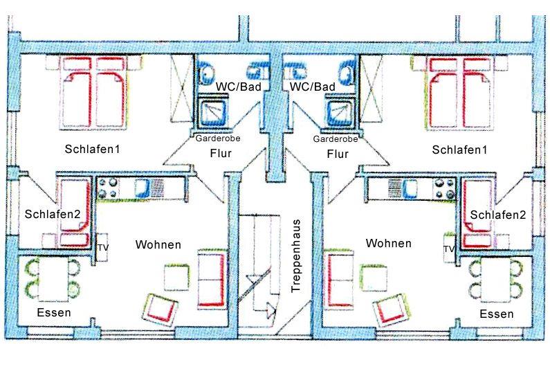Die Wohnung 4 liegt in der 1. Etage bietet Platz für bis zu drei Personen. Sie ist ideal für alle, die Komfort und eine zentrale Lage (Fußgängerzone) schätzen. Es erwartet Sie ein gemütlicher Wohn-Ess-Küchen-Bereich, ein Schlafzimmer mit Doppelbett (2*90*200cm) und ein Schlafzimmer mit einem Einzelbett (90*200cm) sowie eine große, sonnige Dachterrasse.
