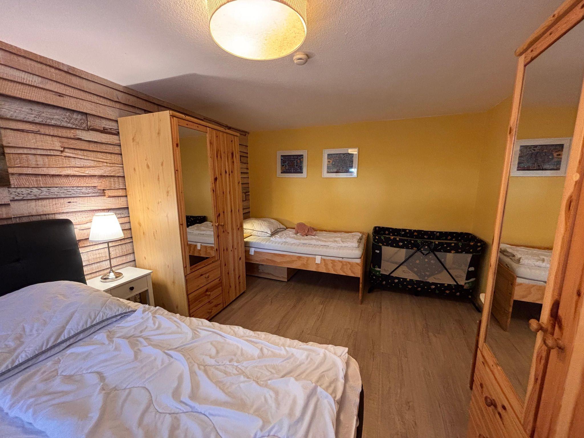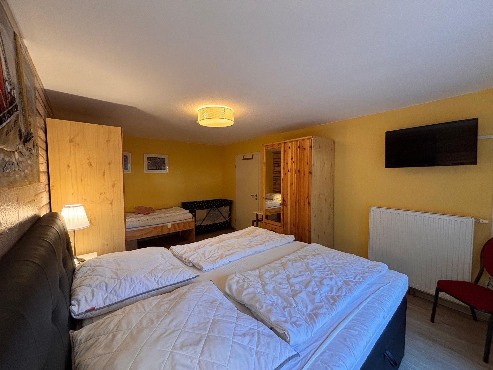 1 Schlafzimmer mit Schrank & Doppelbett (1,80 x 2 m ) & Einzelbett (0,90 x 2 m) & Flachbild-TV