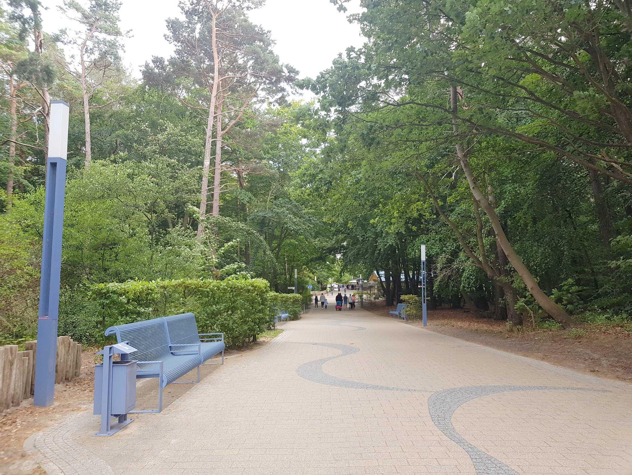 Das Strandhaus auf der Düne verfügt über ein Wohnzimmer, 2 Schlafzimmer, Flur sowie eine separate Küche und ein Bad auf ca. 50 m² Wohnfläche auf einer Ebene. Auf zwei Seiten des Hauses erwarten Sie großzügige Terrassen inmitten einer traumhaften Umgebung im Kiefernwald und ohne Einsicht. Von der Terrasse in Richtung des Strandes aus können Sie auf die Ostsee sehen. Ein Strandkorb auf der Terrasse lädt zum gemütlichen Relaxen ein.