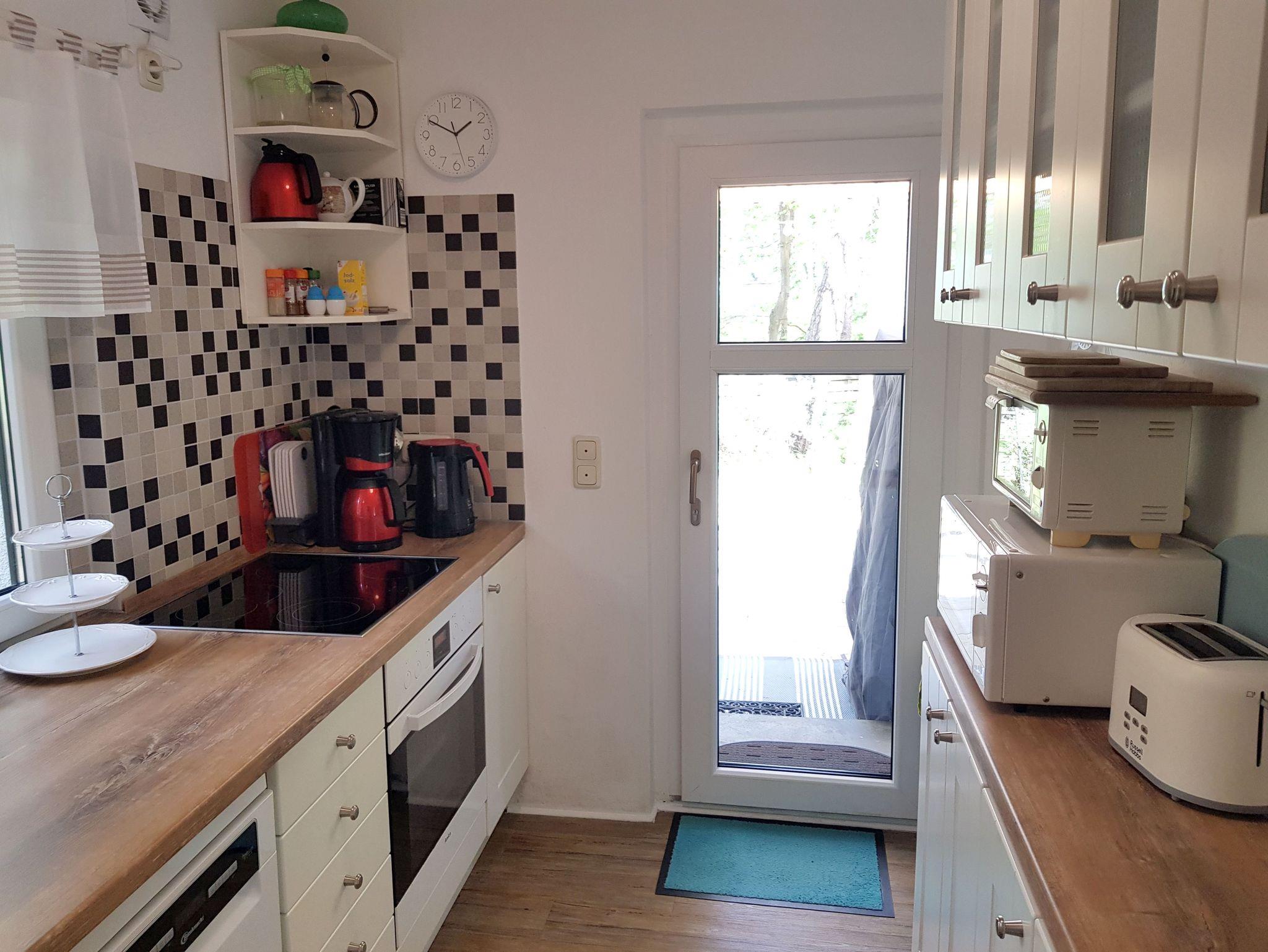 Im ersten Schlafzimmer schlafen Sie traumhaft in einem komfortablen Boxspringbett in der Farbe petrol, mit elektrischer Verstellung, Breite 1,60m mit zwei separaten Matratzen (neu ab 2025). Das zweite Schlafzimmer verfügt über ein Doppelbett (Breite durchgehend 1,40m). Die Küche bietet Ihnen dank der Ausstattung mit Geschirrspüler, Kühlschrank, Herd (Cerankochfeld), Backofen, Kaffeemaschine, Mikrowelle, Toaster und Wasserkocher jeglichen Komfort. Zusätzlich steht eine Waschmaschine bereit. Zugang zur Terrasse über die Küche. Das Bad ist mit Dusche, WC und Fußbodenheizung ausgestattet.