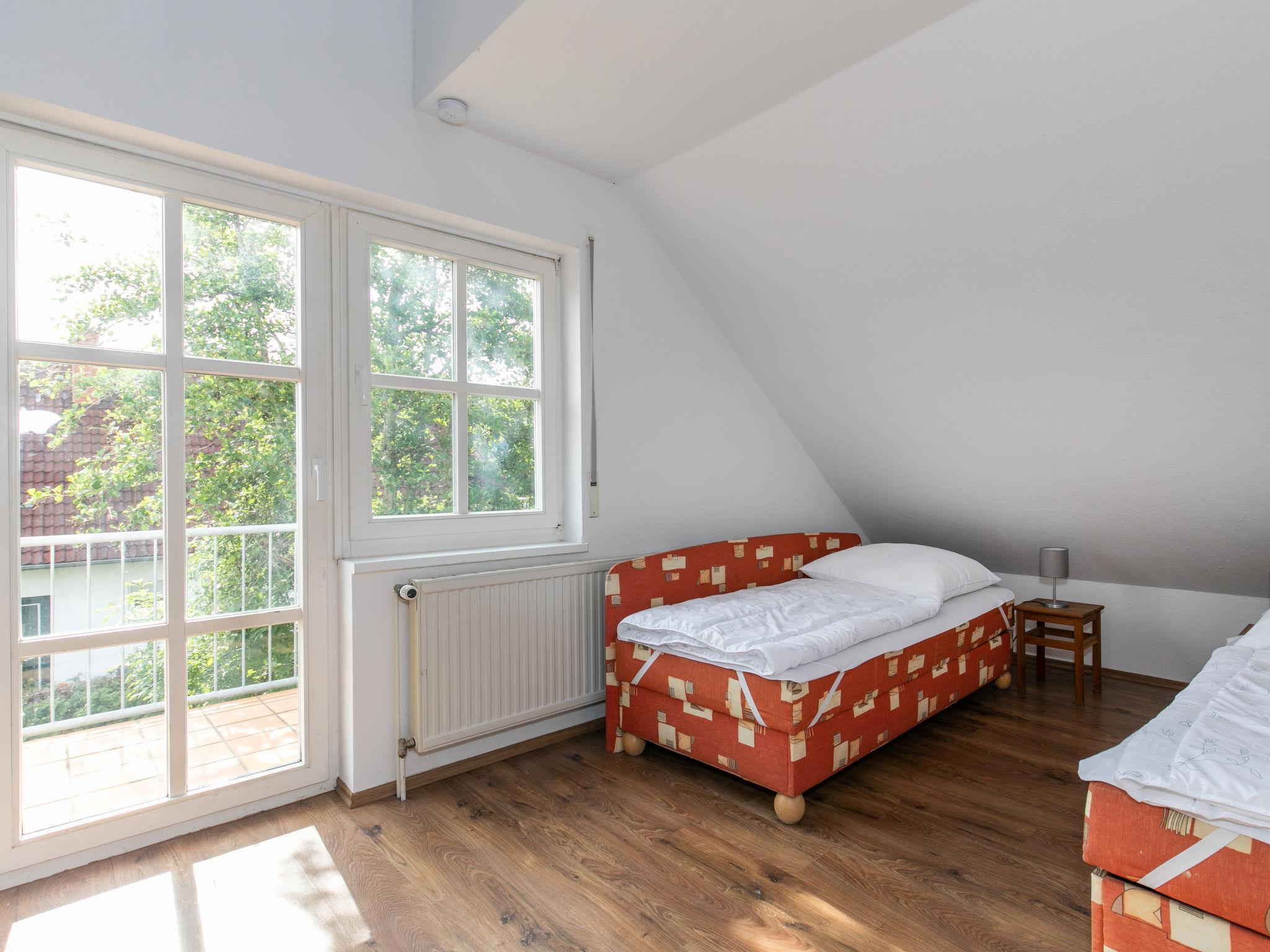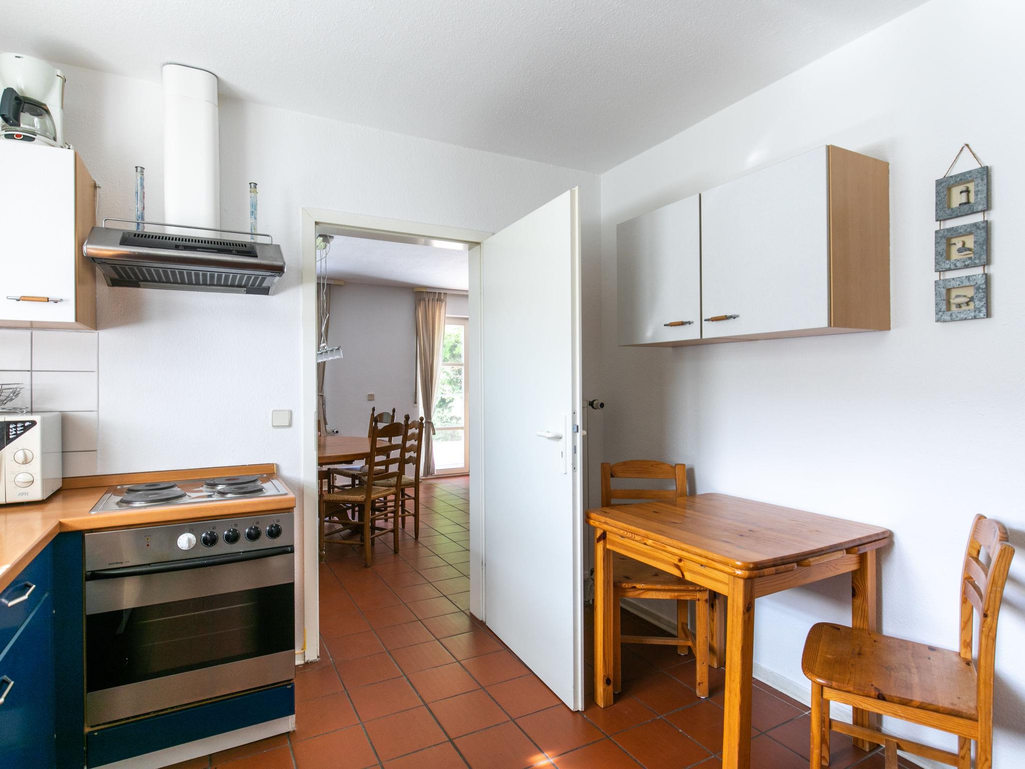 4-room semi-detached house 125 m2 on 3 levels. Practical and cosy furnishings: living/dining room with dining table, satellite TV, radio and CD-player. Exit to the terrace. Kitchen (4 hot plates, oven, dishwasher, kettle, electric coffee machine). Sep. WC. Upper floor: 1 room with sloping ceilings with 1 double bed. 1 room with sloping ceilings with 2 beds. Walk-through room with sloping ceilings with 2 sleeping facilities. Bath/shower/WC. 2nd upper floor: (ladder) open gallery with sloping ceilings, ceiling height 160 cm with 2 sleeping facilities. Gas heating. Carpet. Small balcony, terrace, garden, lawn 200 m2. Terrace furniture. Facilities: children's high chair, baby cot. Parking (2 cars). Please note: non-smoking house. Maximum 1 pet/ dog allowed. Smoke alarm. Instead of an enclosed bedroom, some sleeping areas are located in an open-plan area (gallery, alcove, etc.).