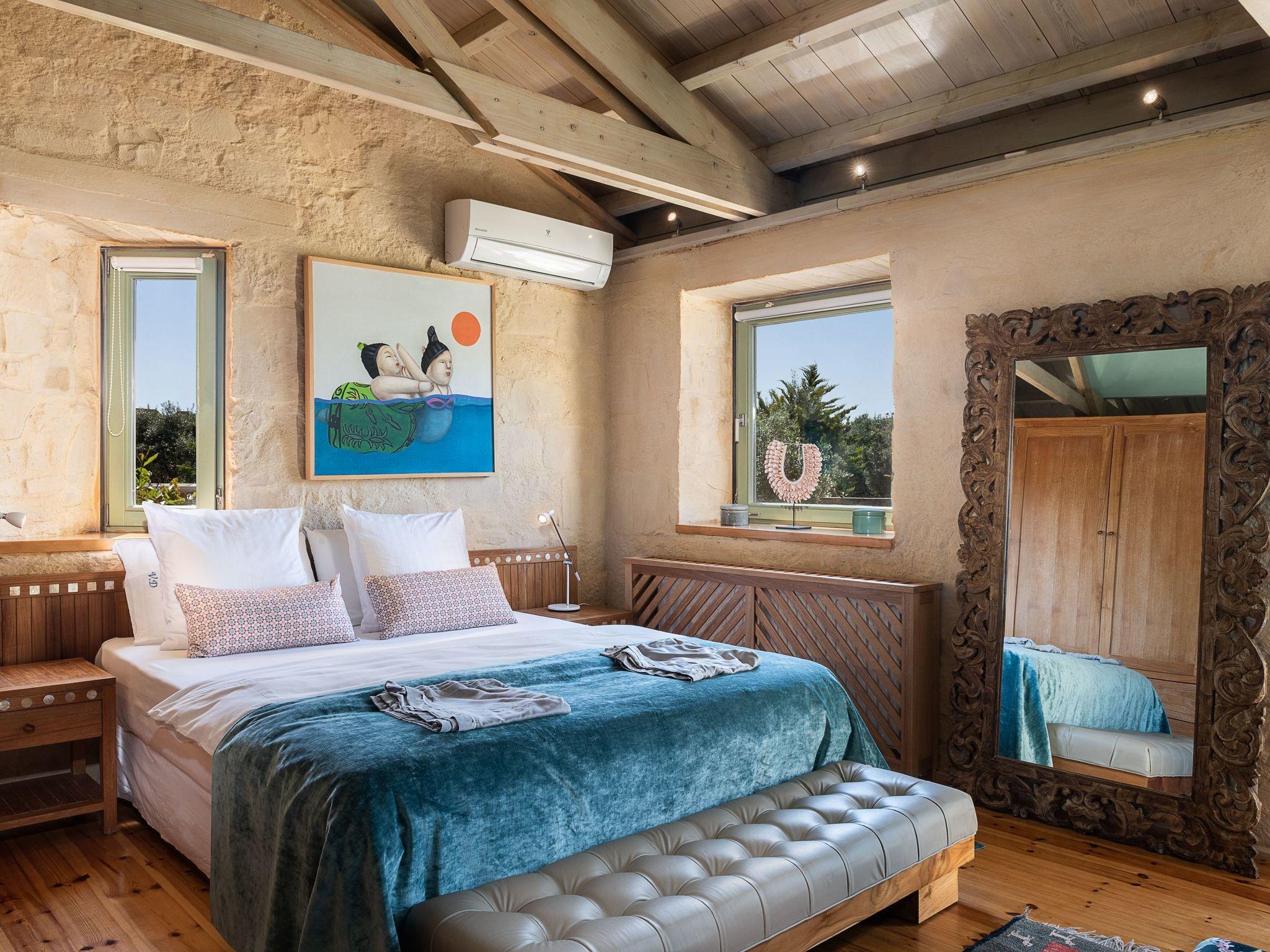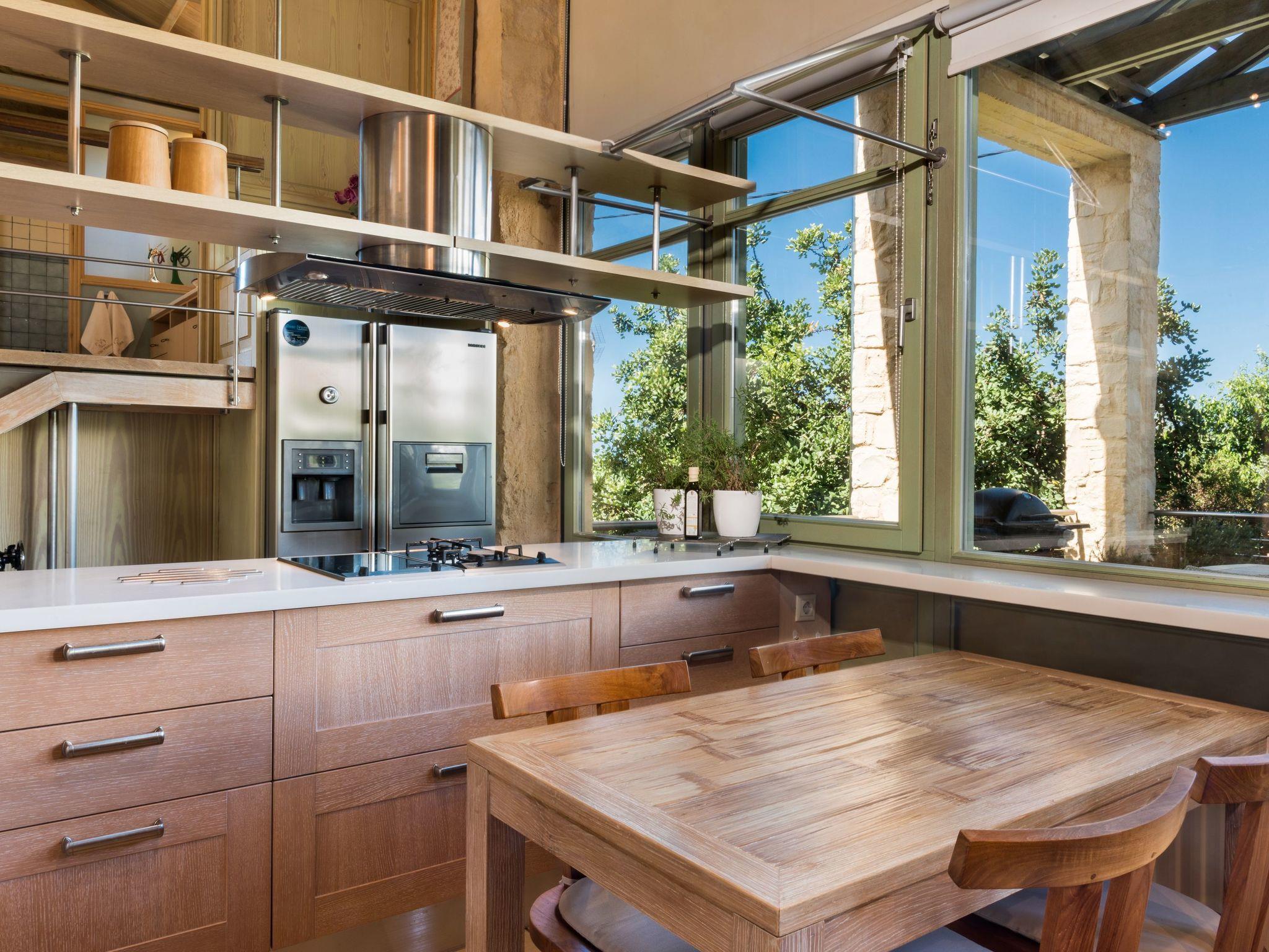 Villa Dimi is a 300 sqm Family friendly house with private infinity saltwater swimming pool, Gym, Sauna, BBQ facilities and a large garden, located in the Akrotiri Peninsula Kalathas Chania Crete, Approved by Greek Tourism Organisation, An Exclusive Architectural Expression in the Cretan Landscape. We have created our own Unique Décor Style with Contemporary Spacious Rooms and Luxurious Furnishing and Fittings. It is Definitely the Best Choice for a Family or a Group of Friends to have a Great Time. Architectural Stone built House, Eco friendly, Comfortable and Cozy, surrounded with a Spacious Garden with Olive Groves, Flowers and Lemon trees, a Private Saltwater Pool a Massage & Yoga Pavilion an Artificial Pond with Goldfish and Water Flowers, An Ideal Place for Family Relaxation Enjoying the Sun of Crete. Furthermore, it is only 1200 meters from Sandy Beach Kalathas and 15 minutes' drive from Chania City-Harbour and the Airport. Live Memorable Moments at our Luxury Villa, An Inspiring retreat. Villa Dimi is built on a plot of 2000 sqm, and the building size is 300 square metres. The Villa Includes : 4 Bedrooms, 3 Bathrooms, an open plan Kitchen/ Living room/Dining room, TV Room with extra sofa bed, a Laundry room and a large Gym , Private infinity swimming and a part of the pool special depth made for children , Massage Yoga Pavilion , Garden , an Artificial Pond ,Sauna, Ping Pong table .Billiard table and Football table and can Easily Accommodated Up to 9 persons , Nearest Supermarket is 500 metres Nearest Restaurants and Shops 1,2 km
