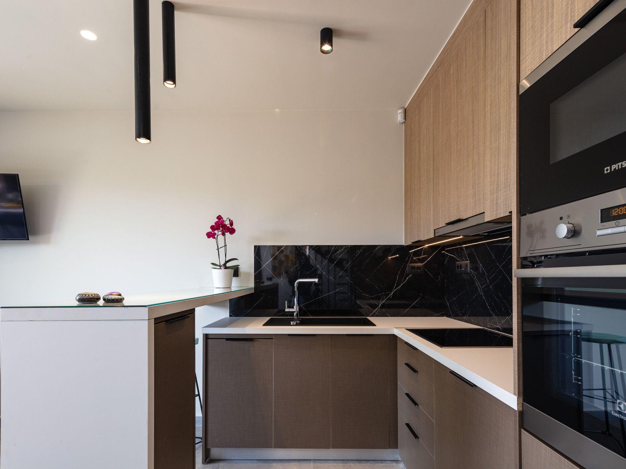 Fully equipped kitchen with stainless steel appliances
