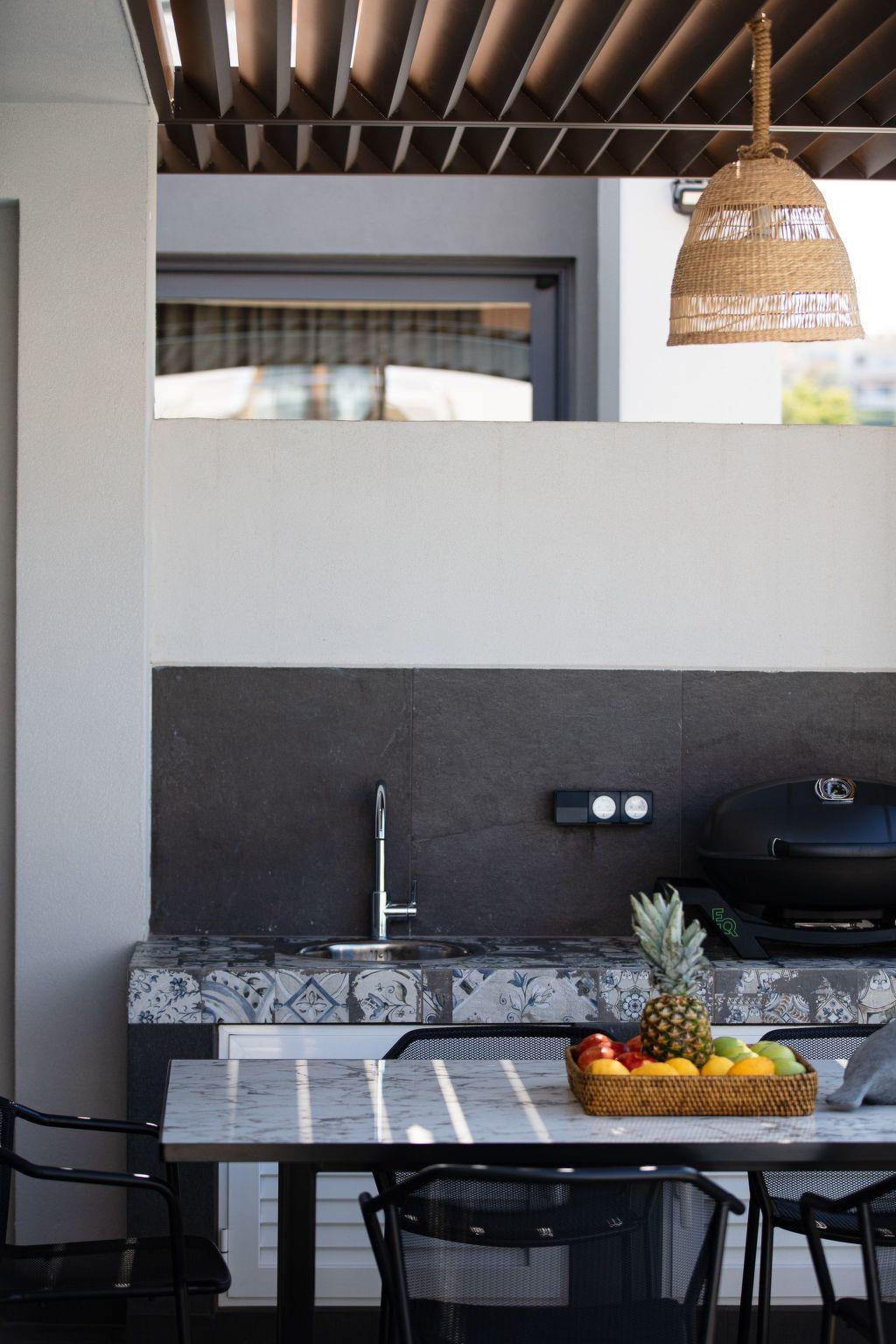 Fully equipped outdoor kitchenette and electric grill BBQ