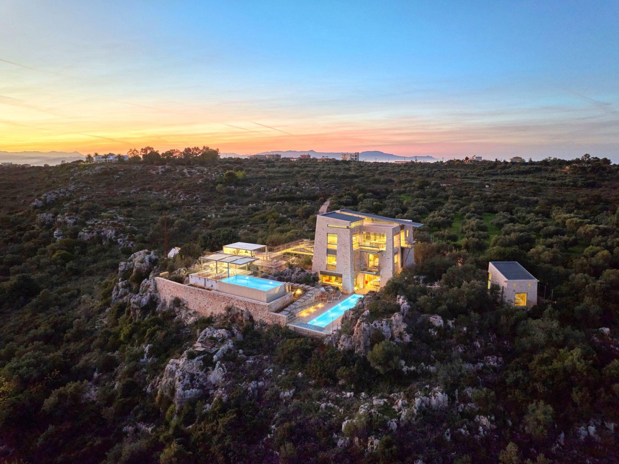 Escape to Olives and Thyme Retreat, a unique luxury villa estate set in an olive grove, with breathtaking views of Souda Bay. Designed with a blend of modern luxury and Mediterranean charm, this exclusive estate accommodates up to 12 guests, and it is perfect for large families, friends, or group retreats.
