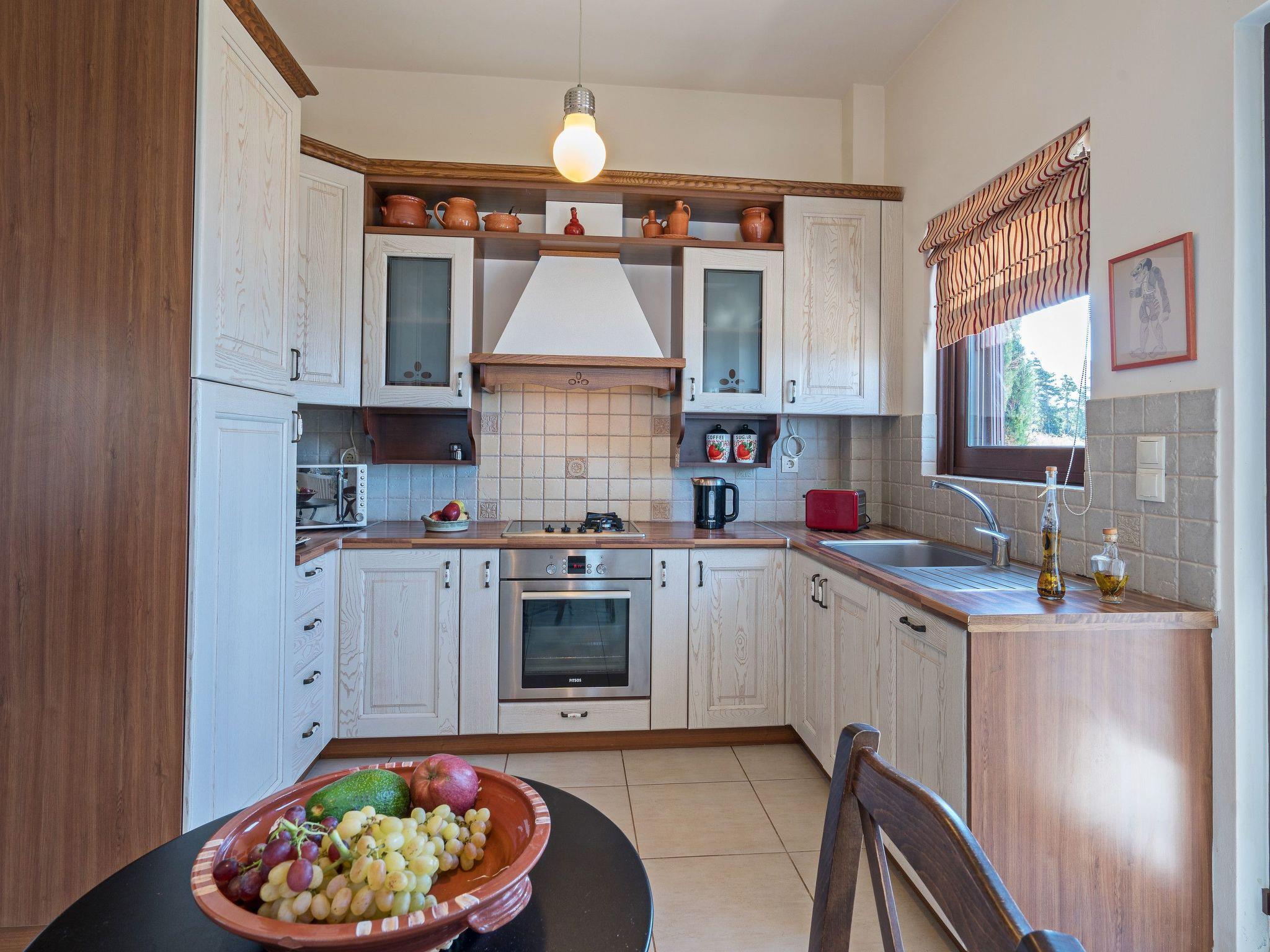 Anemomylos villas are located in a marvelous place with breathtaking uninterrupted views of the sea. It has 2 large private pools which are heated and with a jacuzzi. The closest beach is only 5 km away, where you can also find restaurants, taverns, cafes bars, and intense nightlife. Only 18 km away is the biggest city of Crete, Heraklion where you can find everything you like. ?Distances? nearest beach 5km nearest grocery 5km nearest restaurant 5km Heraklion airport 18km Chania airport 145km An unforgettable experience awaits you at these traditionally wooden-stone-built villas, natural beauty combined with interior comforts can satisfy even the most demanding guest. This property is a combination of 4 different apartments. There are 2 apartments of 100sqm each, where there is one double bedroom and one bedroom with 3 single beds in each one of them. Total 5 persons in each of these 2 apartments. Moreover, there is a veranda with amazing views of the landscape and sea. Then there is another studio with one bedroom with a double bed and two single beds. Lastly, on the back side of the property, there is another maisonette apartment with 1 double bedroom and one more bedroom with a double bed and a single bed. All 4 apartments are fully equipped since they all have their own kitchen, living room, dining area, and bathrooms. A communal play area of 100 sqm where you can also have dinner or lunch. So each one has their own privacy but yet again you will all be sharing the same grounds and 2 pools. At the back side of each villa, one can find a barbeque with a dining table and a parking area. Every apartment has an elegant living room with a fireplace, television, and air conditioning. The kitchen is fully equipped with electric appliances such as a cooker, fridge, coffee maker, microwave oven, dishwasher, washing machine, etc. Outside Area: a protected BBQ area from the wind along with a kitchen and a dining table. Check out is 11:00 latest and check-in is at 15:00 earliest.