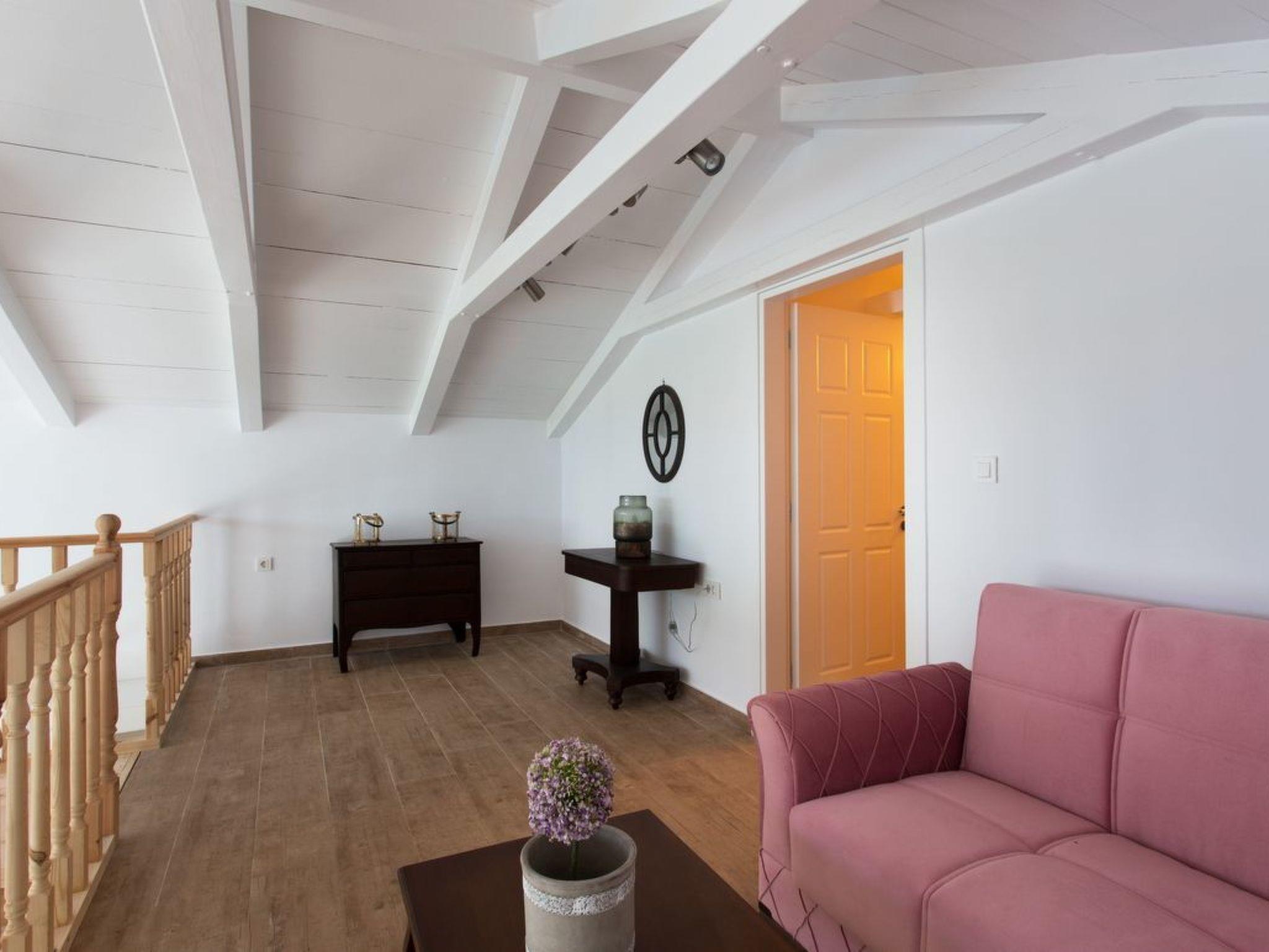 Features:Elissavet is a luxurious villa of 120 sqm, situated in a vineyard estate of 50.000 sqm.The architecture of the villa is fully in line with the traditional, manor houses of noblemen of the past centuries, enriched with all the modern comforts.The villa is spread in two levels, consisting in total of 3 bedrooms and 3 bathrooms, with capacity up to 8 guests, offers a great variety of facilities and plenty of entertainment choices.The main entrance of the villa leads to the 50sqm living room with a modern fully equipped kitchen and dining table, all in country style. There you can find a comfortable sofa in front of the TV set, which can easily turn into a single bed.Thanks to a lovely 4m span glass door and the other wide openings, you can feel the vineyard and pool presence in every moment. The veranda is covered, has a dining table and a phantastic view over the pool, the play ground under the olive trees and the vineyard.Furthermore, on the ground floor, there are two double bedrooms (with double beds), each with its own bathroom. In the attic there is a comfortable internal balcony facing the living room, with a desk for your computer and a comfortable sofa (which can turn into a single bed) with a coffee table. From there you can enjoy the view of the pool, the vineyard, and the surrounding hills with the traditional churches on their peaks. In the attic there is the third bedroom with twin beds and its own large bathroom.Fast WiFi access available throughout the property.