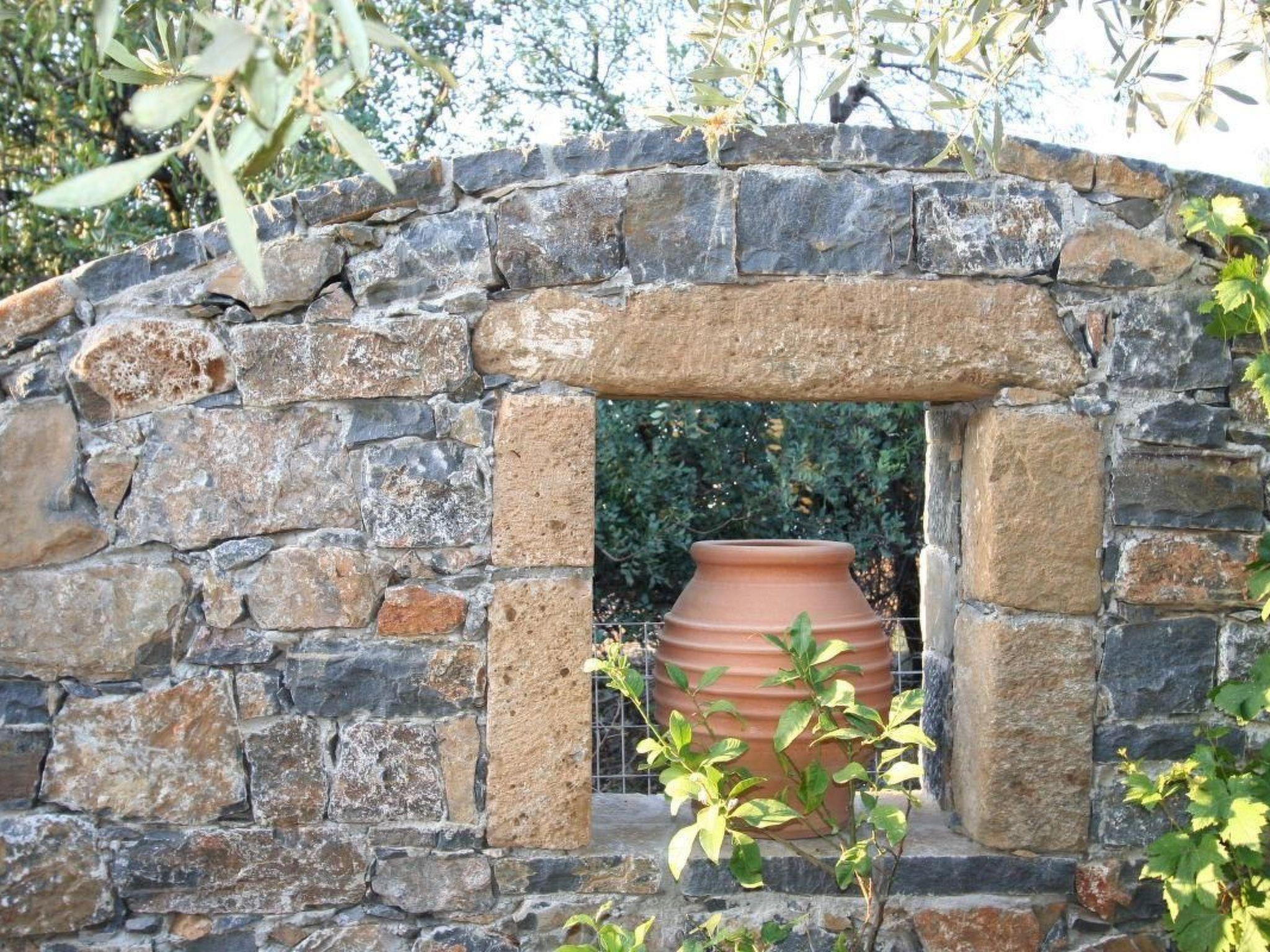 This apartment provides two bedrooms, one with two single beds (90 x 200cm), the other with a double bed (160 x 200cm). There are also bedside tables, a wardrobe and a mirror with a stool. The living room provides a table, chairs and a sofa, which can also be used as a bed for a fifth person, with access to the generous terrace with a table and chairs. The kitchen is separated visually from the living room by a low wall and is equipped with wall and floor cupboards, a sink, fridge, coffee machine, stove with electric rings, and ample cutlery and crockery. The bathroom has a shower, toilet and washbasin. There is a second terrace to the rear of the house, right in front of a colourful oasis of flowers.