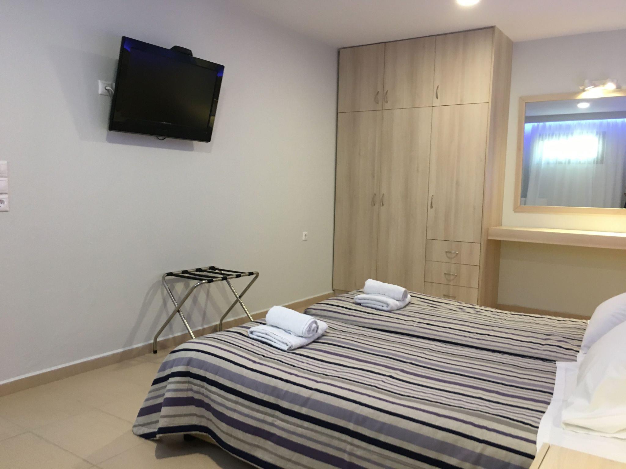 When entering Villa Antonios, you can see the living room, the kitchen and the dining area. There is also a twin bedroom with its shower/WC. At the lower ground floor you will find a twin bedroom, a billiard playroom and a shower/WC. On the first floor there is the master bedroom that includes a large bathroom with HydroJet massage, and there is also a single bedroom. Bathrobes, beach towels, toiletries and slippers are provided. The villa is fully air-conditioned and equipped with free Wi-Fi, TV & Home-Cinema. The living room has a fireplace and the kitchen comes with a washing machine, electric oven, microwave, fridge / freezer and toaster.