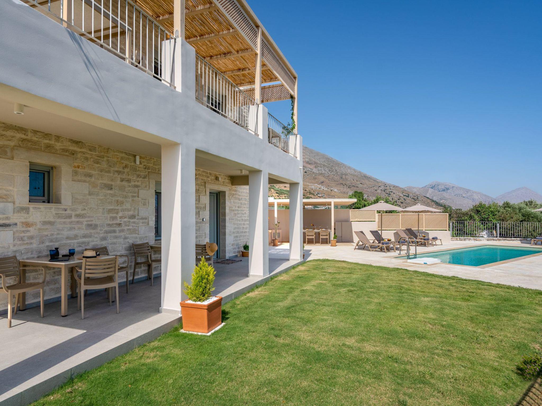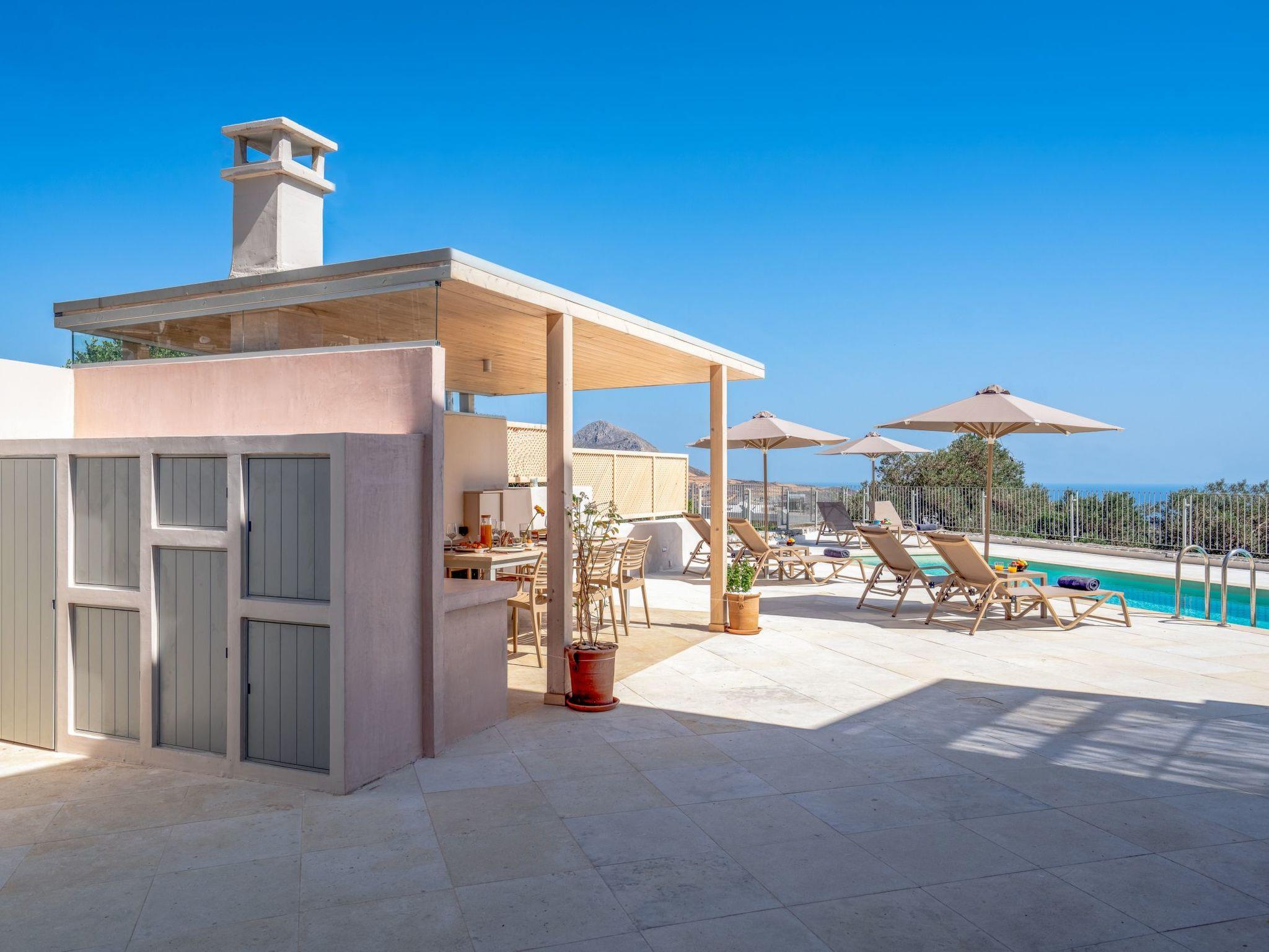 The villa’s location is as breathtaking as its design. Imagine waking up to panoramic views of olive groves, rolling hills, and the Libyan Sea, all at one, in the horizon. Whether enjoying a meal at the barbecue area, having a drink on the patio or relaxing by the private pool, you’ll be surrounded by natural beauty. Inside, every window of the house opens to stunning scenery, immersing you in the authentic Cretan landscape.