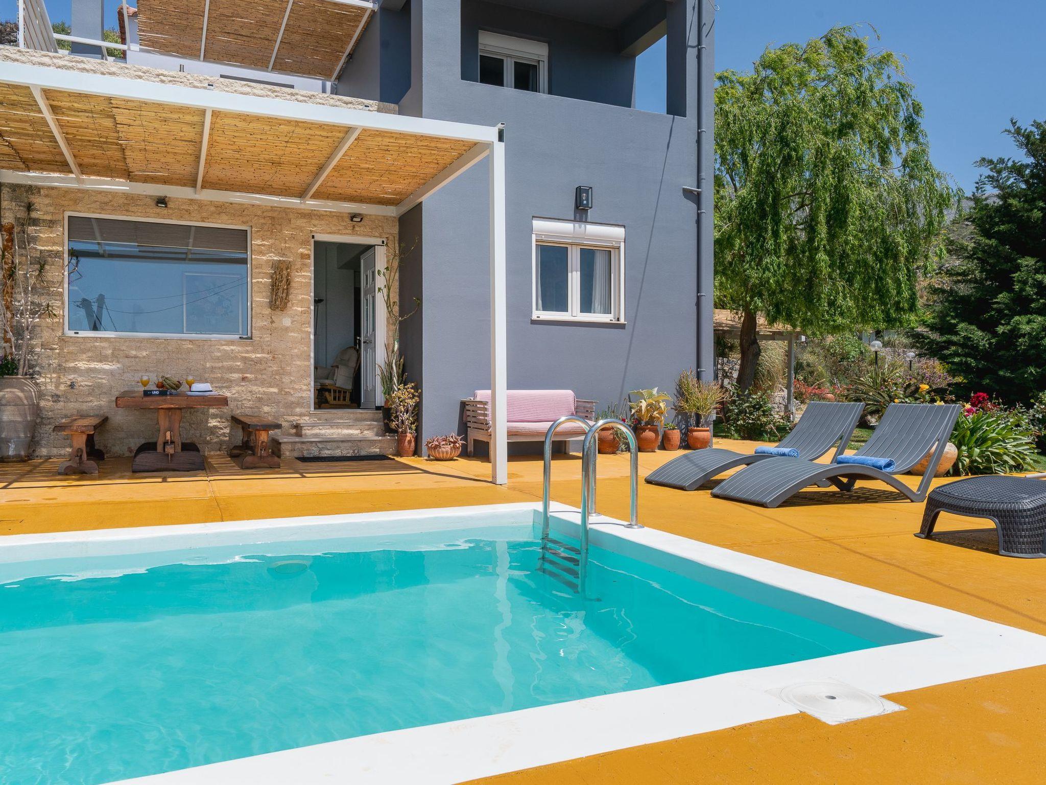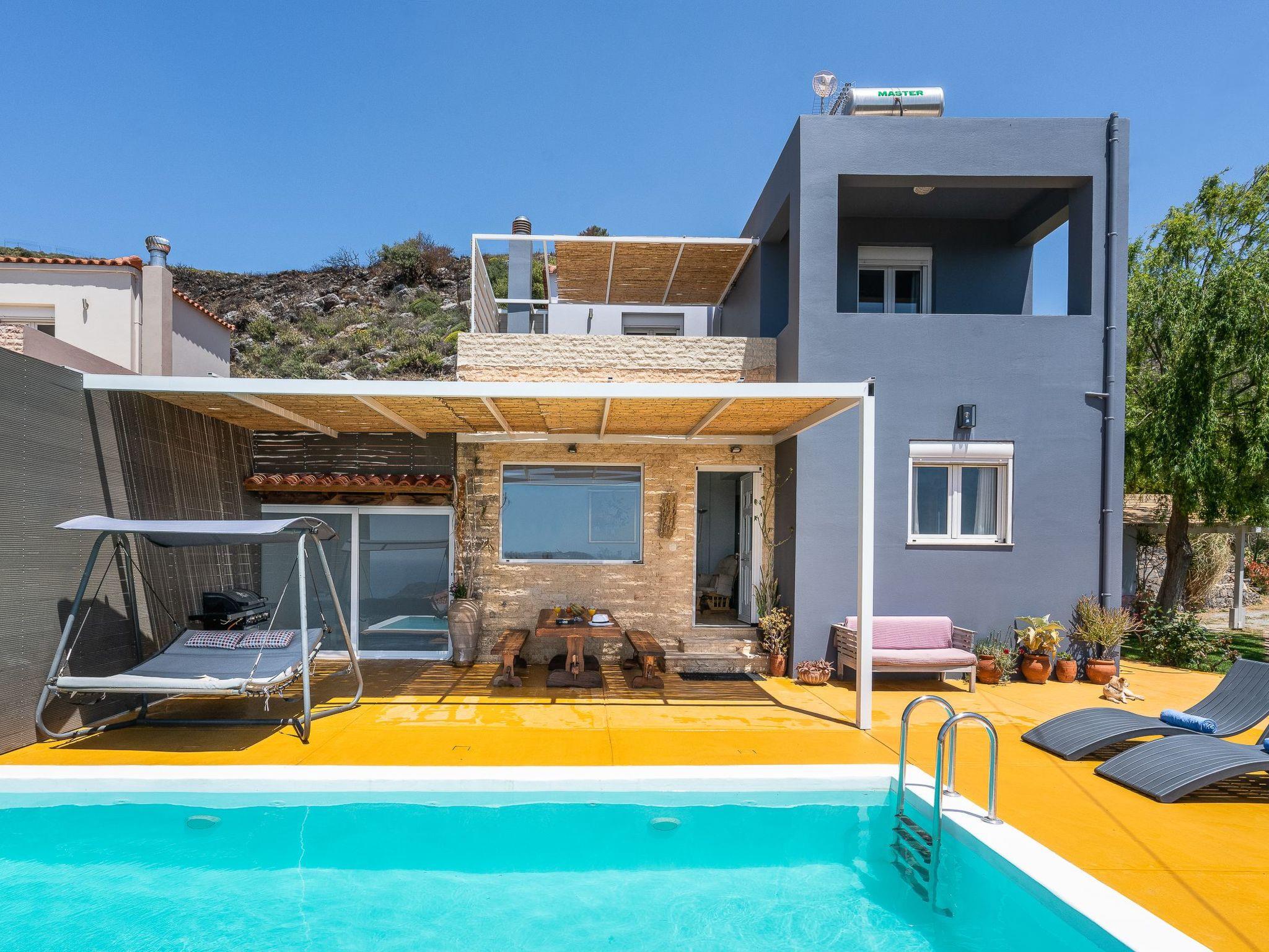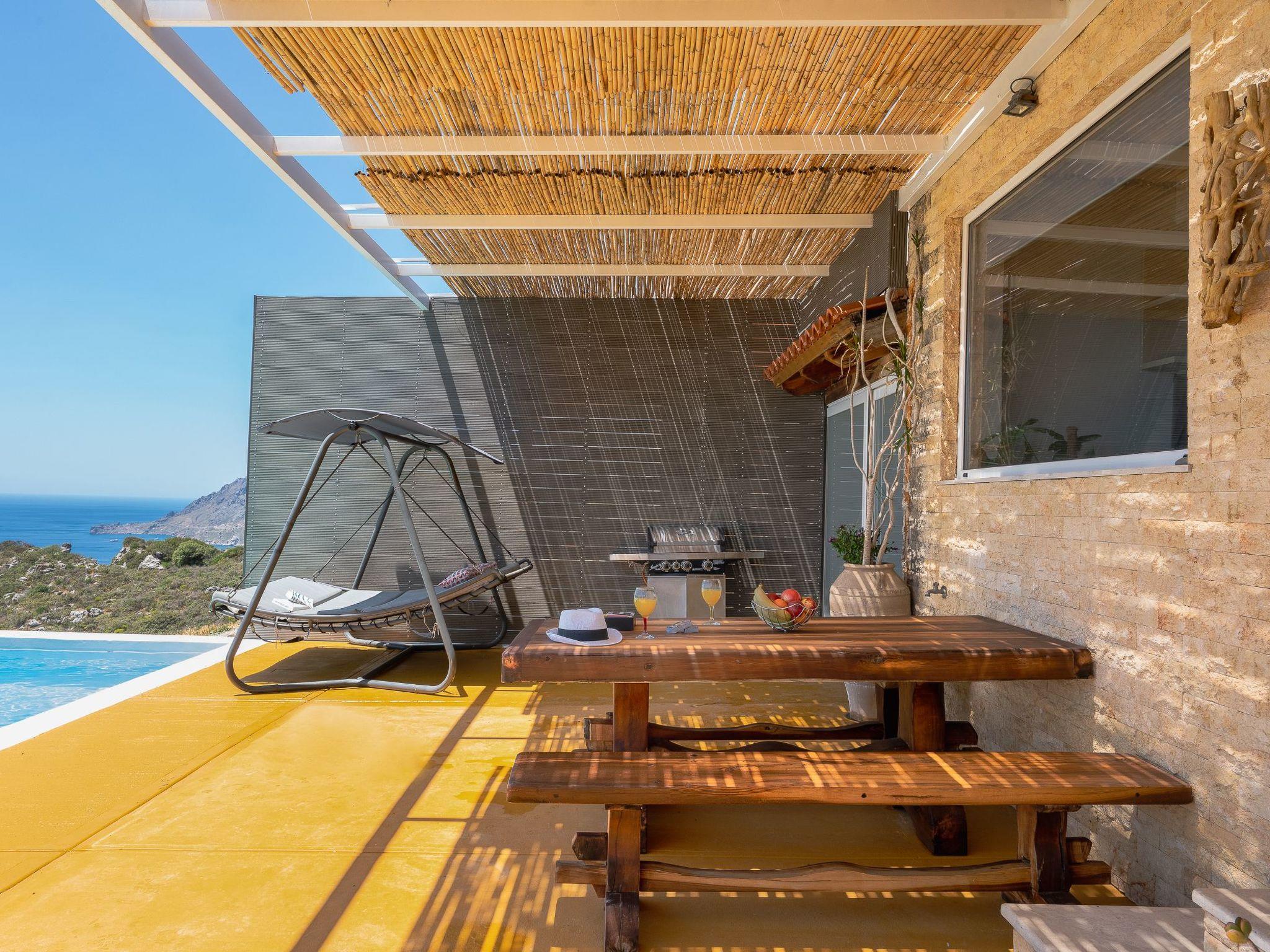Mirthios Panorama Villa is a newly built three-bedroom villa that guarantees a very special holiday to remember. It’s light, it’s modern and the holiday-feel it exudes is tactile. This comfortable vacation villa boasts excellent facilities and access to a garden with an outdoor swimming pool and spectacular views of the bay of Plakias. Inside, Mirthios Panorama Villa is modern, bright and open with comfortable living areas and tastefully designed bedrooms for comfort with their own balconies. The beautiful kitchen is fully equipped and has everything you need to make a great dinner or a quick snack while enjoying the views from the windows. The open plan living area with cosy couches offers a beautiful setting to rest and unwind with your favorite reads, while the fireplace provides great heating if you’re visiting in winter months. Outside on the pool terrace, the Mirthios Panorama Villa boasts spacious grounds built on levels with a private infinity pool overlooking the vast Libyan Pelagos beyond. The roof relax lounge really shows off the panoramic views available from this great location with gorgeous Mediterranean views– the perfect spot for a sundowner while you soak in the sunset! Admire the panoramic views of the Libyan Sea and the wild rugged nature of the surrounding mountains from your balcony. This villa provides friendly service and its guest felt comfortable and more than welcomed.