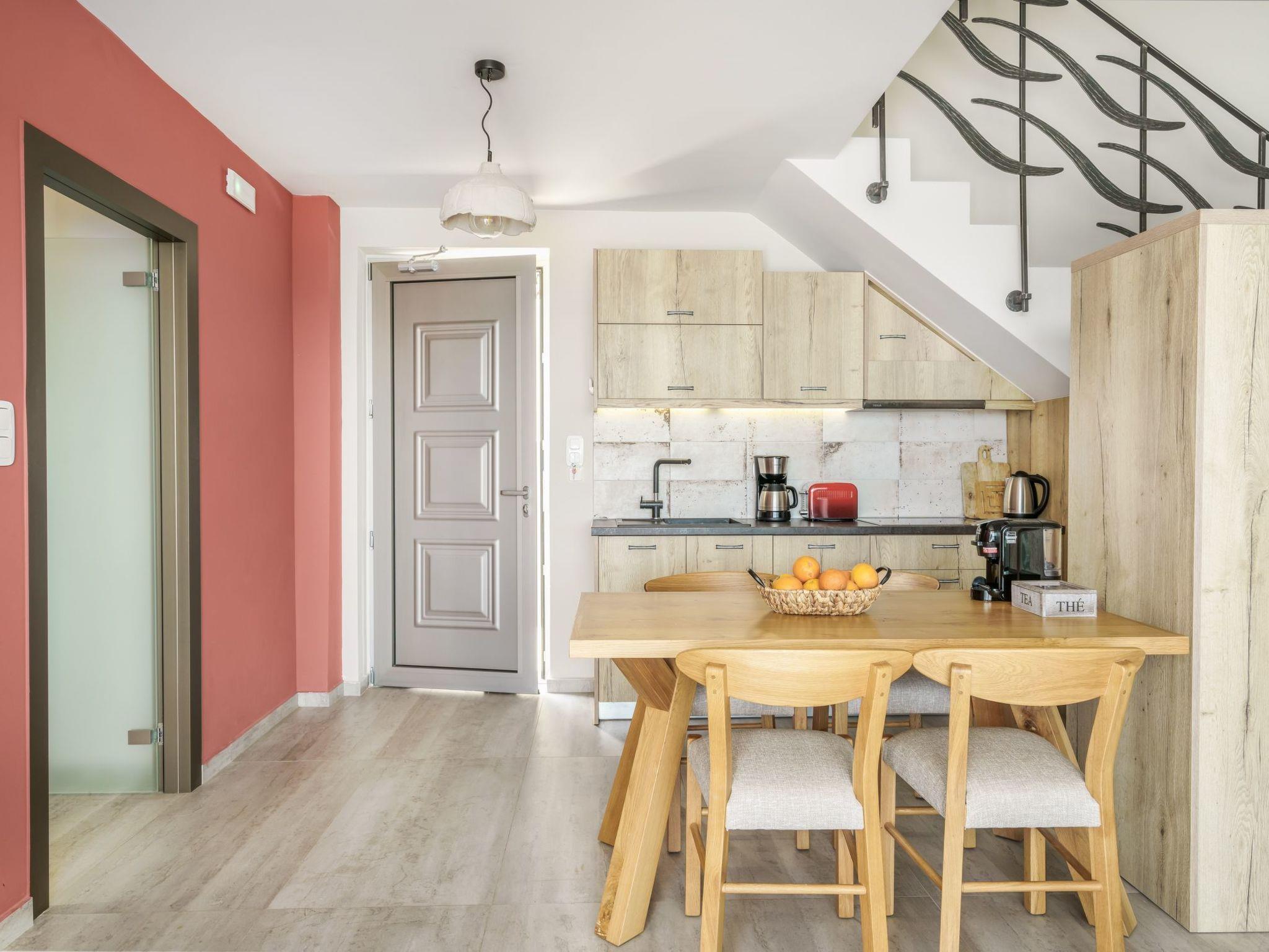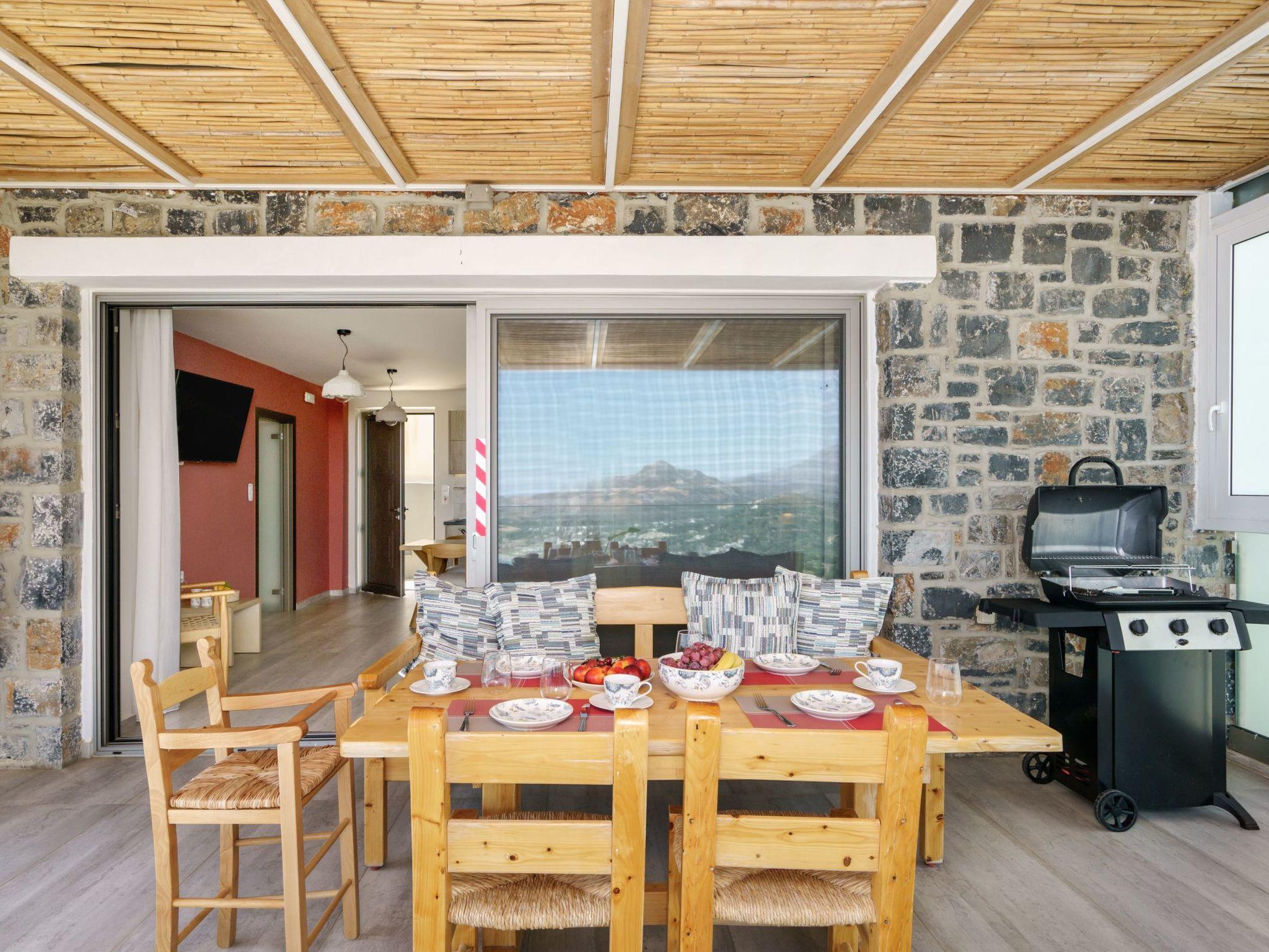 Upon arrival, guests are greeted with a welcome pack, ensuring a warm start to their stay. The villa boasts a spacious and tastefully furnished living room, providing a cozy space to unwind after a day of exploring Crete's beauty. The adjacent dining area is ideal for enjoying delightful meals prepared in the fully equipped kitchen, which features modern appliances such as a stove, oven, dishwasher, and espresso machine. To enhance your stay, the villa offers cleaning and laundry services, allowing you to fully indulge in your holiday.