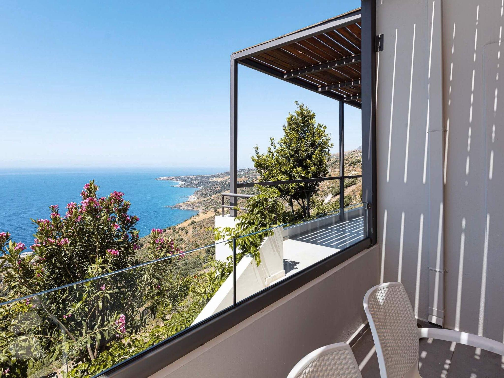 This Greek luxury villa is in the popular holiday destination of Rodakino (which literally translates as “Peach”), in South Crete. The villa is close to the quaint village of Plakias and is an excellent locale from which to explore various Cretan attractions. Villa Stefanos is home to modern, classy aesthetics and awe-inspiring sea views. Villa Stefanos’s lounge is tastefully furnished and equipped with a large TV and trendy sofas. The open-plan layout of the holiday home’s living area sees the dining and kitchen areas adjacent to the lounge and stylishly furnished and equipped with all the mod cons. The villa’s living area has large glass doors leading to a shaded balcony with outdoor dining furniture and a private swimming pool area complete with sunbeds, umbrellas, a hammock, and a shower. The luxury villa also offers access to a ping pong table and a vineyard. Villa Stefanos has 3 elegantly decorated bedrooms, each offering contemporary desk and wardrobe spaces. The first is a single bedroom on the ground floor and has one bed. The other two bedrooms are on the floor above and have two combined twin beds in each, with glass doors and a large balcony providing spectacular sea views. There is a full bathroom on each floor and a storeroom with a safe-deposit box on the ground floor. The Stephanos luxury holiday villa offers a welcome pack of fresh fruit, wine, and coffee capsules for guests to enjoy. A cleaning service is provided 3 to 4 days per week as required and there is private parking for 1 vehicle. Book your luxury vacation at Villa Stefanos and let its sophisticated style wash over you as you revel in the splendor of a perfect Greek getaway!