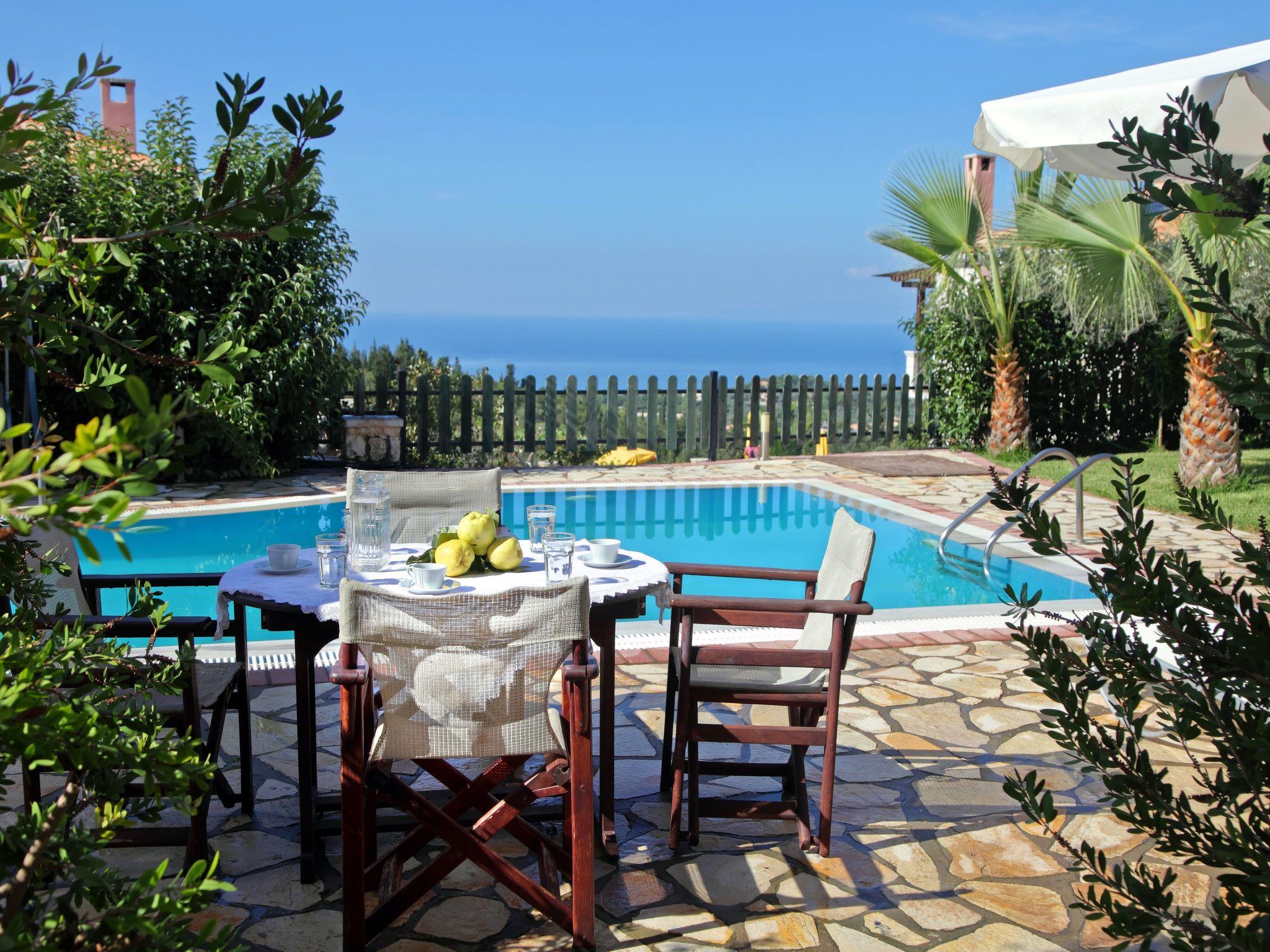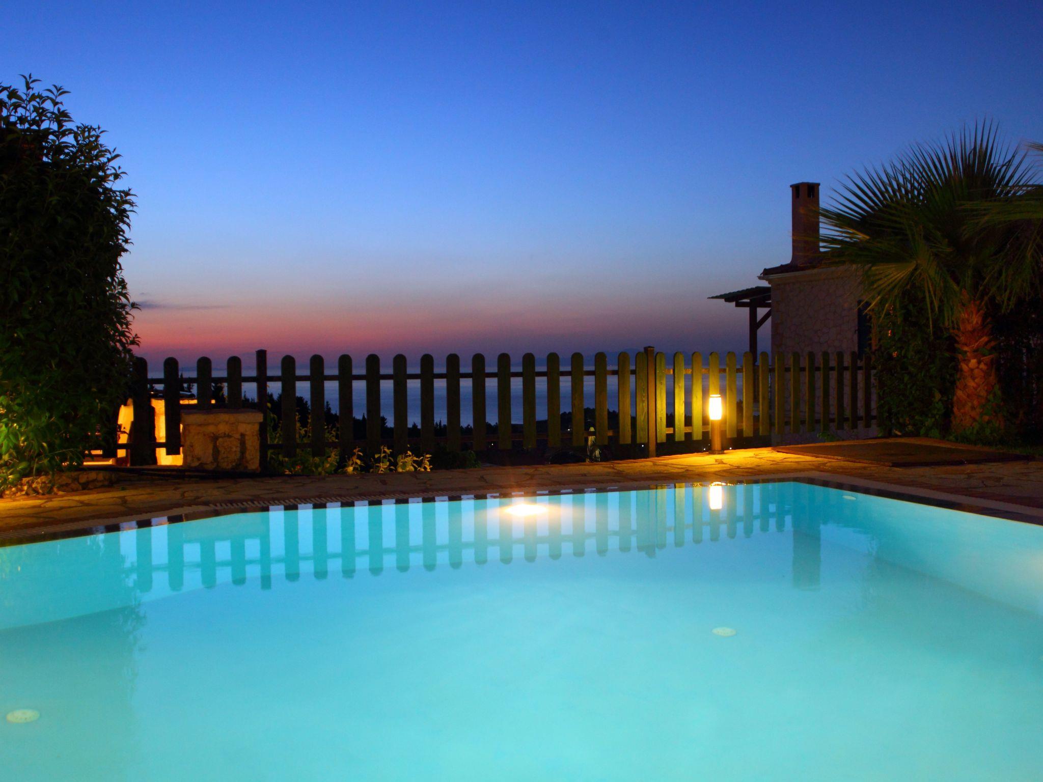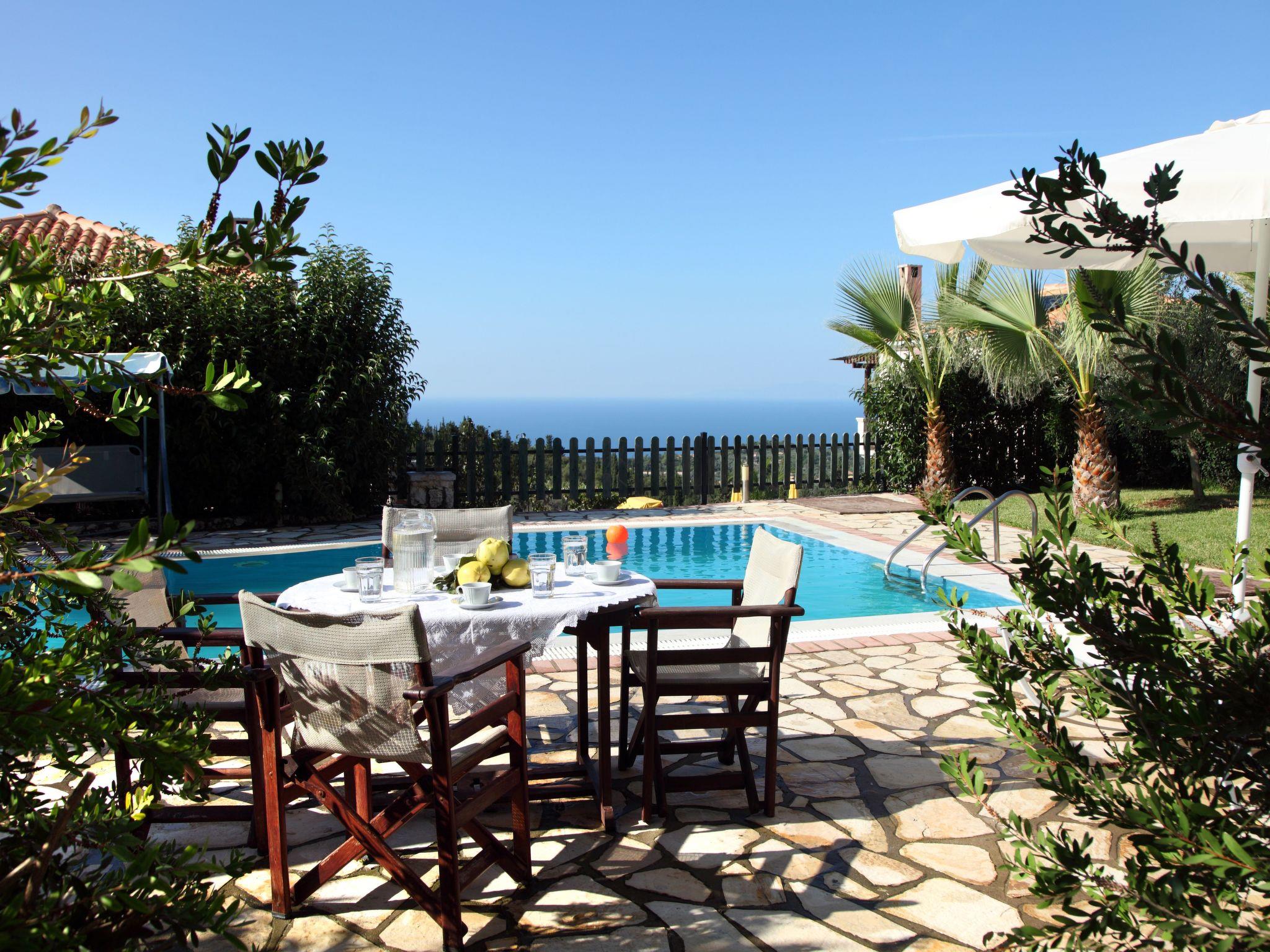 The private outdoor area of Villa Evelyn offers a lush green garden with colorful flowers, trees with seasonal fruit, and a stone built BBQ. You will love the afternoons enjoying the magical sunsets while cooling down with the soft touch of the mountain breeze, making memories that will stay forever in your heart.The final touch is the blue water of the large swimming pool that becomes one with the horizon and the endless blue of the Ionian Sea.Villa Evelyn is an ideal choice for you and your family that promises a comfortable and unforgettable stay on Lefkada Island.