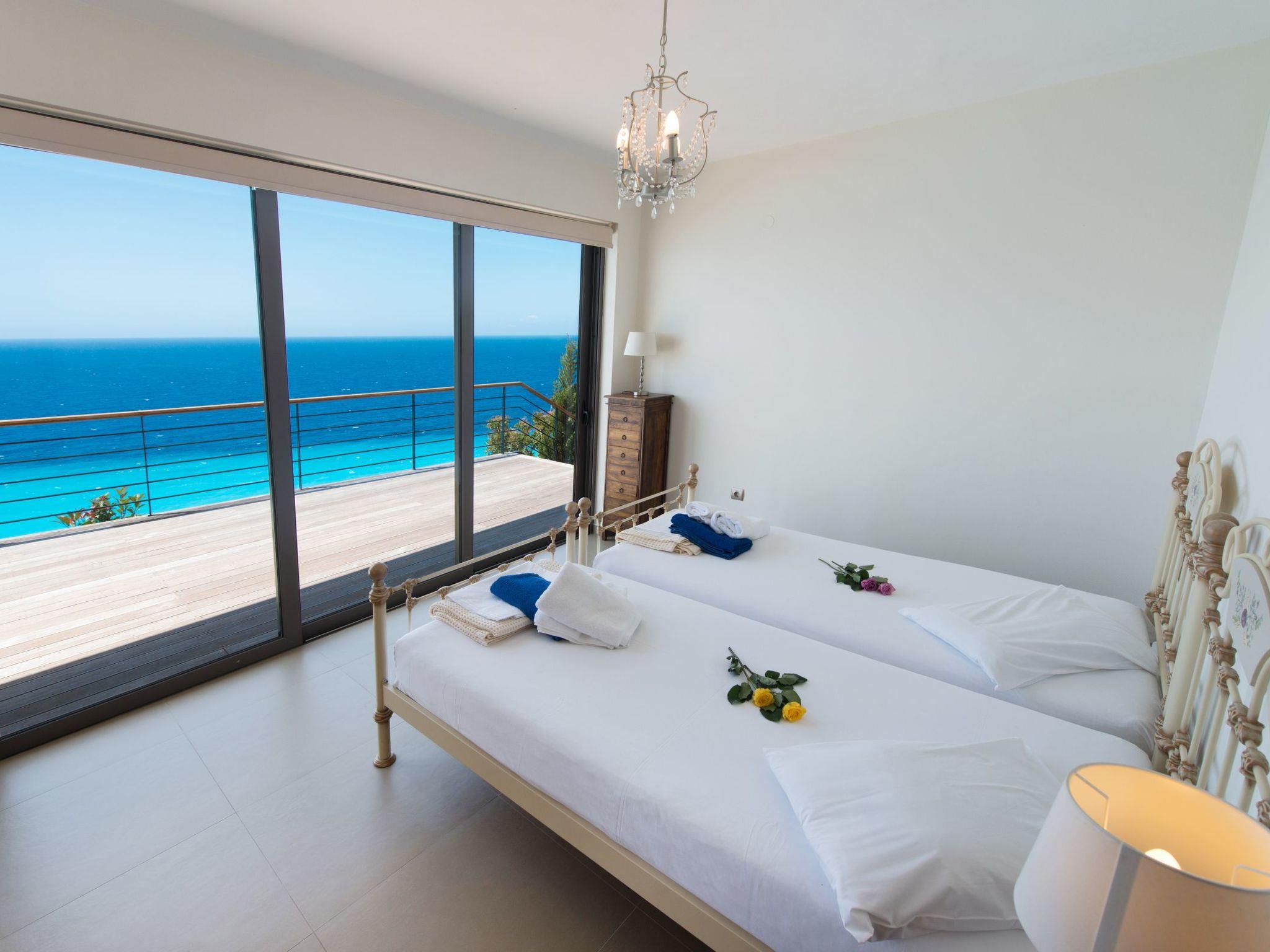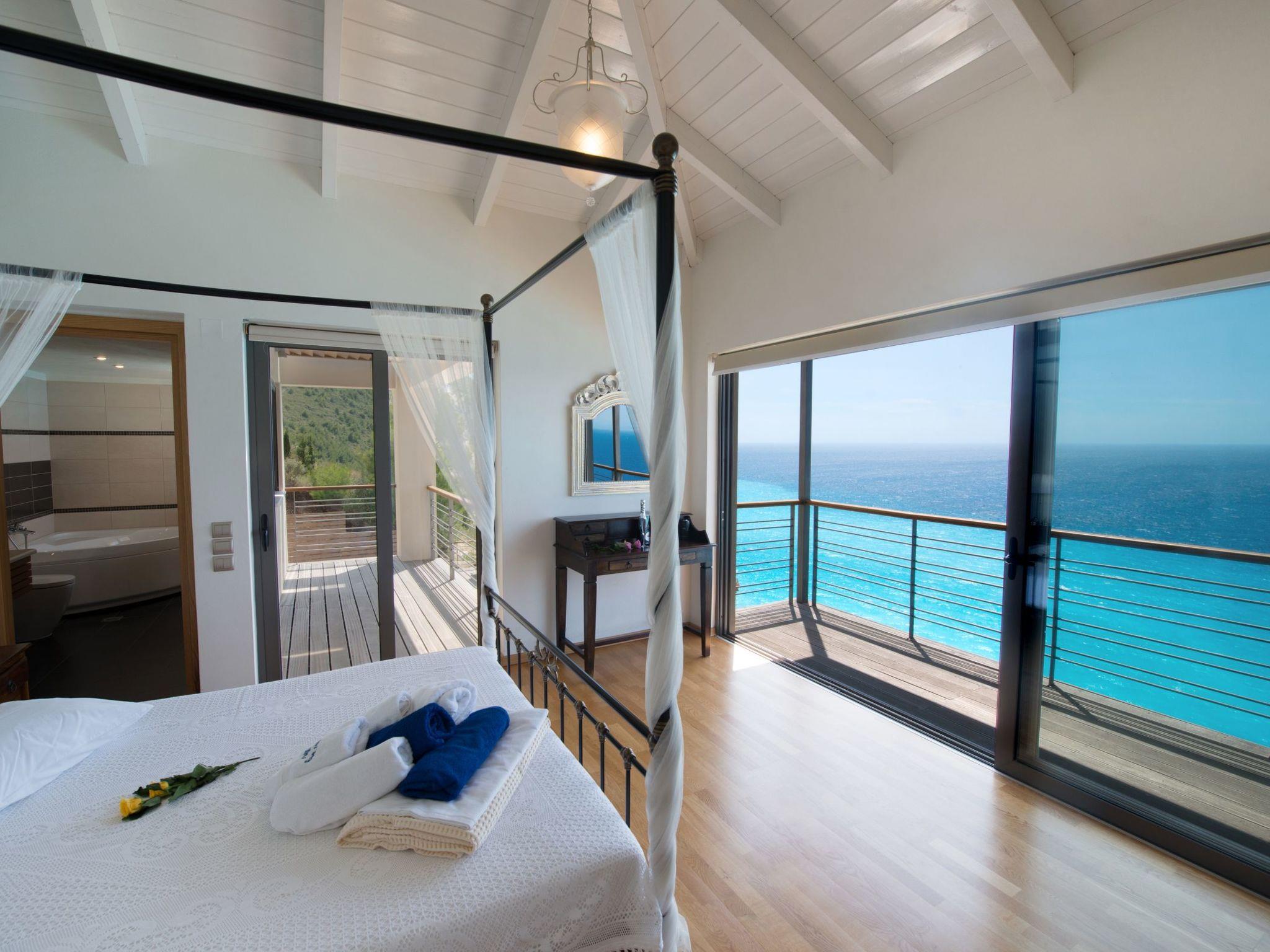 It's the only property above Milos Beach, one of the most beautiful beaches of Greece. Enjoy your privacy there even on crowded August days.This modern built villa offers total privacy, luxury and relaxation in one of the most secret and beautiful beaches of Greece. Inside benefits from: The ground floor you have the fascinating living room that offers beautiful sea views from every corner, due to wall sized glass sliding doors.The room is elegantly furnished with comfortable sofas from where you can enjoy the beauty that surrounds you or just watch your favorite TV programs. A dining area is set on the other side of the room with a modern 7 seat dining table. An open-plan kitchen is perfectly integrated in the living room . The kitchen is fully equipped with brand new appliances so you’ll enjoy preparing your favorite dishes with a view.A spacious twin bedroom is located on the ground floor. It is fitted with two single beds, has large wardrobes and glass sliding doors which drive to the terrace and let the light invade the room. There is an en-suite bathroom with Jacuzzi column.Going a few stairs up, next to main entrance, you have the second bedroom, fitted with a double bed, large wardrobes and en-suite bathroom with Jacuzzi bath. Also with sliding glass doors and a big balcony which faces the fantastic beach and the sea below.The third bedroom has a king size bed and is located on first floor, has large wardrobe, a lounge area fitted with two armchairs and a coffee table placed near the glass door that opens to a lovely terrace from where you can admire an amazing sea view. This bedroom also has an en-suite bathroom , fitted with Jacuzzi bath and high quality accessories.Outside benefits from:A west facing terrace which is accessible from the living room and one bedroom. The terrace is furnished with comfortable rattan sofa, armchairs, a 8 seat dining table and sun lounges where you can really enjoy your holiday and the best Mediterranean Sunsets.The 9 x 6 cutting edge pool is right in front of the terrace and is also surrounded by a thick layer of green grass.Changeovers on Sunday or Saturday (in principal).If bookings allow it, we can be flexibleFlights to our local airport Preveza are available from many European countries including UK, Holland, Germany, Austria, Switzerland and more. From Preveza airport you can either take a bus, taxi or rent a car to Lefkada. ATHENS TO LEFKADA by CAR is approximately 385 Km. You can reach Lefkada by car, via the bridge that connects Lefkada with the mainland . By BUS they are frequent KTEL bus routes to Lefkada from Athens, Thessalonica, Patras, and other major Greek cities. From Athens, bus service is daily and travel time is 4/5 hours. From Thessalonica, bus service is 2 times the week and travel time is 5 hours. There are daily flights from Athens International Airport, to Aktio Preveza Airport and also from Corfu Airport.We are happy to prearrange a taxi transfer for you from Preveza airport to the villa and give any advice on travel.All services, air conditioning, towels, linen, electricity, water, final cleaning are included in the price. No extra costOur concierge can meet you at Lefkas town or at Agios Nikitas village and escort you to the villa and help with your luggage. Luggage storage is not a problem.The following description is a first draft, which is still awaiting revision. Please contact our Customer Service if it contains any gaps.Beachfront modern villas with private pool and breathtaking viewThe beach villas are situated on Lefkas island on the West coast of the island. Just a fifteen minute drive from Lefkas town and two minutes from the pretty seaside village of Agios Nikitas.Ground floor you have the fascinating living room that offers beautiful sea views from every corner, due to wall sized glass sliding doors.The living area is elegantly furnished with comfortable sofas from where you can enjoy the beauty that surrounds you or just watch your favorite TV programs. A dining area is set on the other side of the room with a modern 7 seat dining table. An open-plan kitchen is perfectly integrated in the living room . The kitchen is fully equipped with brand new appliances: oven, microwave, vitro ceramic, espresso and regular coffee machine, dishwasher, refrigerator, freezer, toaster, water kettle and all kitchen utensils are provided so you’ll enjoy preparing your favorite dishes with a view.One double bedroom is located on the ground floor. It is fitted with two single beds, has large wardrobes and glass sliding doors which drive to the terrace and let the light invade the room. There is an en-suite bathroom with Jacuzzi column.Going a few stairs up, next to main entrance, you have the second bedroom, fitted with a double bed, large wardrobes and en-suite bathroom with Jacuzzi. Also with sliding glass doors and a big balcony which face the fantastic beach and the sea below.Third bedroom has a king size bed and is located on first floor, has large wardrobe, a lounge area fitted with two armchairs and a coffee table placed near the glass door that opens to a lovely terrace from where you can admire an amazing sea view. This bedroom also has an en-suite bathroom, fitted with Jacuzzi and high quality accessories.A west facing terrace is accessible from the living room and one bedroom and is furnished with comfortable rattan sofa, armchairs, a 8 – seat dining table and sun lounges where you can really enjoy your holiday. You can enjoy there the best Mediterranean Sunsets. The 9 x 6 cut edge pool is right in front of the terrace and is also surrounded by a thick layer of green grass.The beach villas are the only villas on Milos Beach. A stroll down your own private steps and you are on the beautiful sandy beach and the waters edge.The villa is approximately a 30 minute drive for Preveza airport, and 1 hour 30 minutes from the port of Igoumenitsa.LEFKAS nestles away in the center of the main Ionian Islands and is the only 