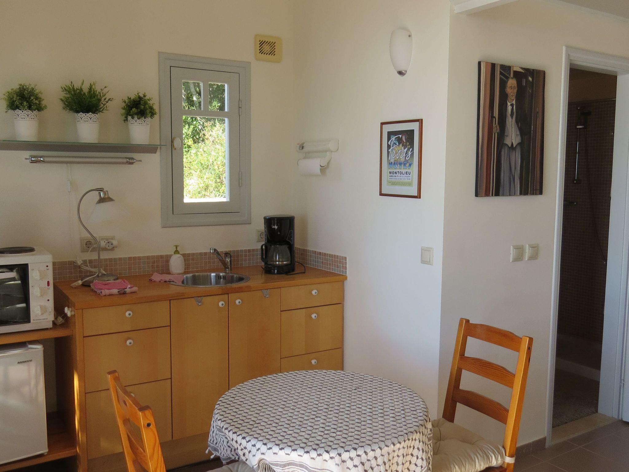 - Bedroom 3 (this is the bedroom in the studio): AC, insect nets in all windows and the patio door, refrigerator, coffee maker, mini-kitchen with mini-oven, couch, armchairs, table, chairs, wardrobe, books, TV (satellite).