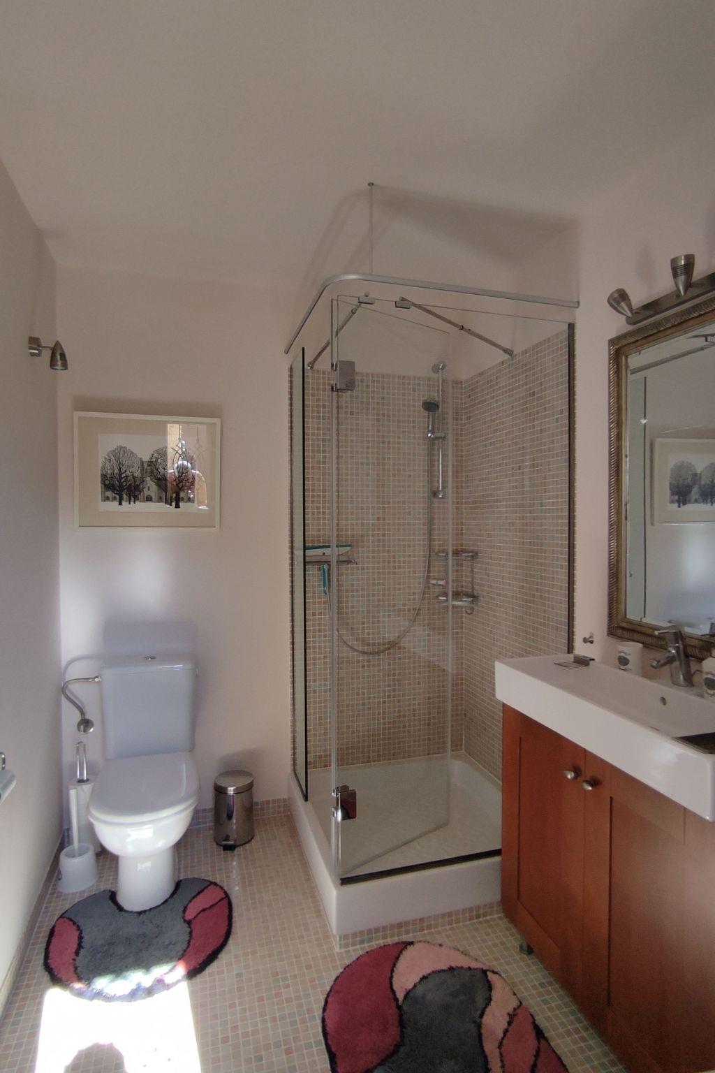 - Bathroom 3 (this is the bathroom in the studio): glazed shower, washbasin, WC