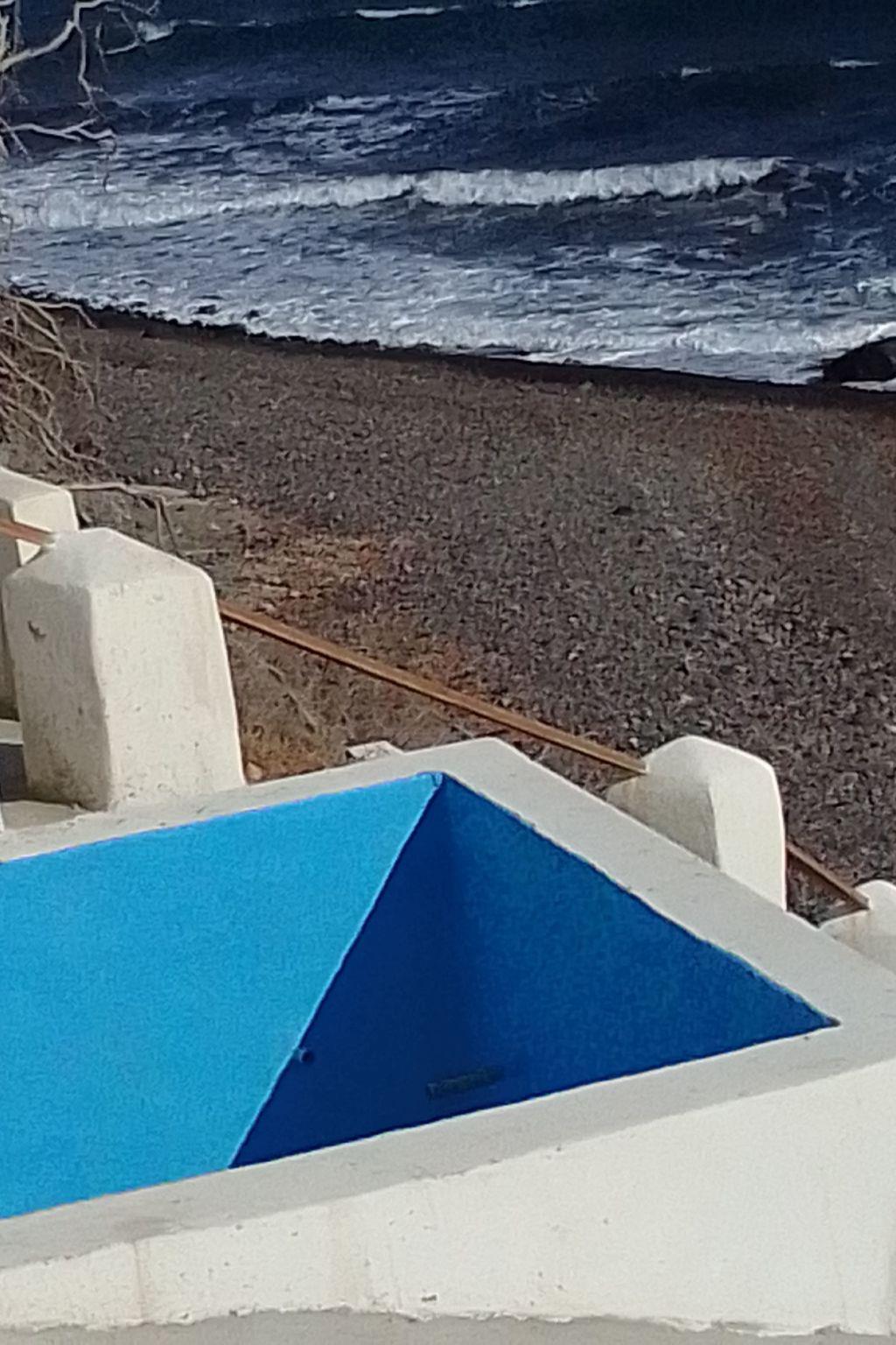 Santorin Grace villa is one of the best beach villas in the island as concern construction equipped location. Only 25 meters from the beach with private road from balcony to the beach. The house is 78 sq meters two bedrooms one saloon /kitchen and two toilets with shower . Outside 50 sq.meters balcony with two BBG table and chairs.Each bedroom with one queen size bed for two persones and in the saloon one also bed for two children. Outside the land 3000 sq.meters with seasonal fruits is the busses station and busses are passing every 30 minutes to capital FYRA amd Village OIA. In the home is service home delivery food on request in 20 minutes time and nearest taverns and supper markets 2 Km away. Home inside have free of charge 4 cars parking free of charge. As the house in the middle of Santorini all interested places are located small distance. A big swimming pool serves also the guests of the appartment.