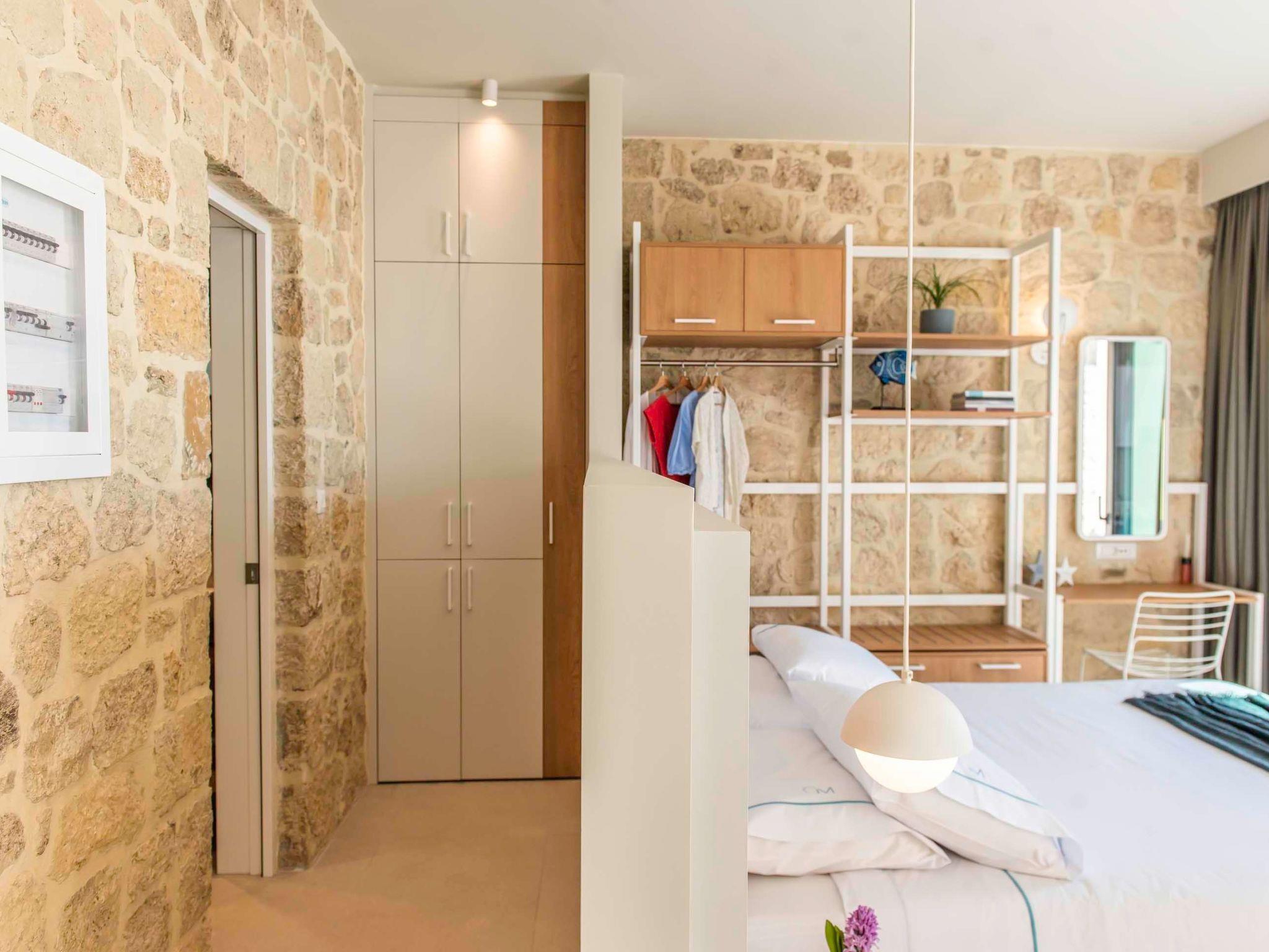 Villa Vista is a hidden villa on the earth giving the feeling you are somewhere away from all. The interior area is designed with minimal elements and the airy spaces are making the perfect spot for a couple or family with a young kid or baby. An open-plan space consists of a well-organized kitchen, a servery for both breakfast and dinner, a living room area, and a bathroom that is suitable for all the guests. Next to the bathroom, in the wardrobe, there is a washing and dryer machine. In the same place, there is a double-sized bed with a high-quality mattress and a Smart TV. Imagine waking up and enjoying the endless blue of the sea directly from your bed, in particular, we can say that this is the place where the sky touches the sea. However, the luxury doesn’t stop here!