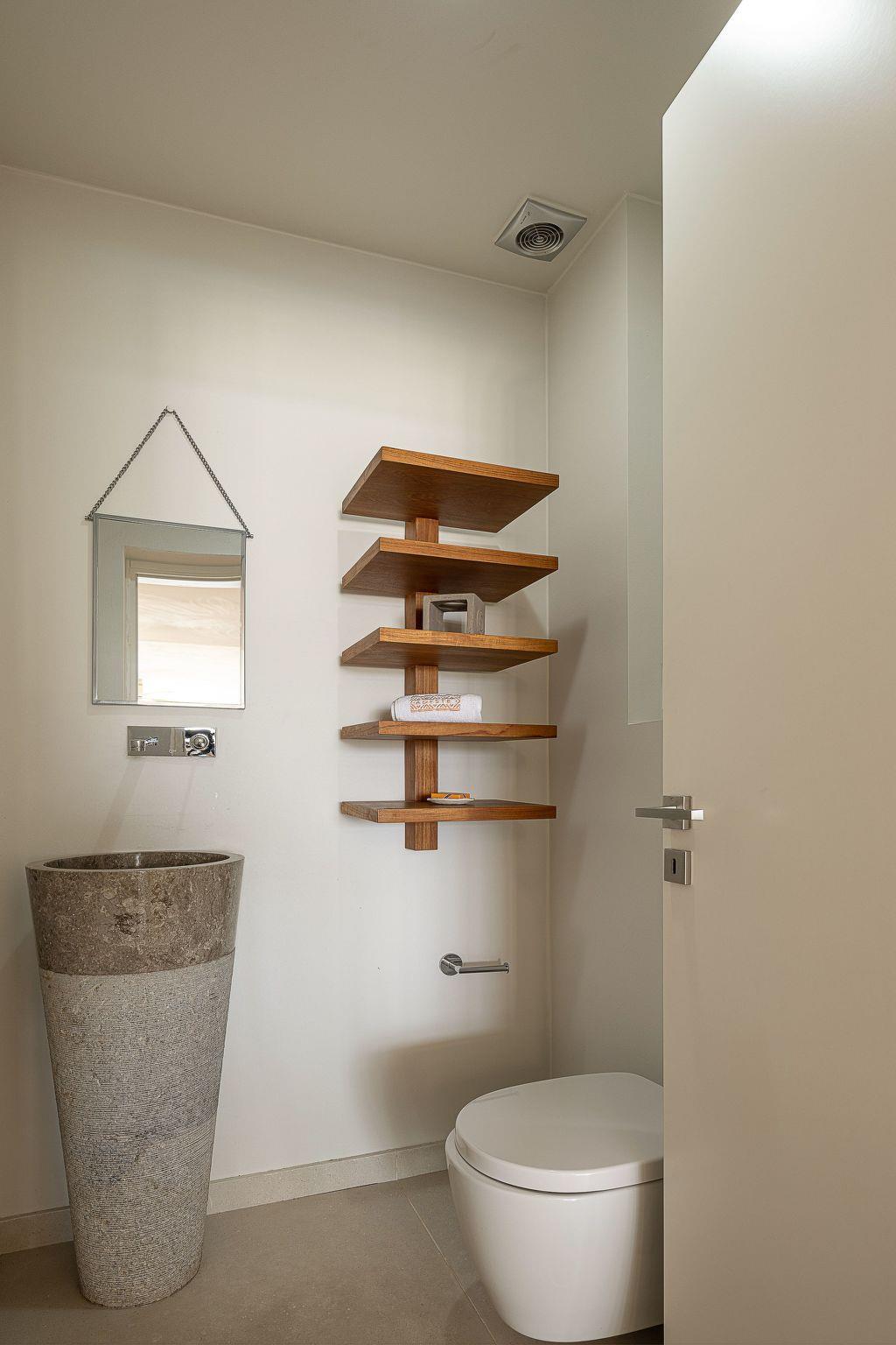 The ground floor is split into two levels – separated by 3 steps: on the upper one stands a fully equipped kitchen and a large wooden dining table, on the lower, the living room with a comfortable large linen sofa. On the same level, there is a queen-size bedroom with an en-suite bathroom, fitted with a marble sink, teak furniture, and a shower column with hydro massage. On the first floor, two bedrooms are carefully located on two opposite ends to ensure the complete privacy of the guests, and each comes with its own terrace. The first bedroom features a split king bed that can be separated or joined, depending on the guests’ needs. All bedrooms can guarantee a maximum sleeping experience thanks to the top-notch mattresses, the pillow selection service, and the large TV screen. The romantics will find refuge in the canopy bed of the second room, dotted with a large terrace furnished with sun loungers.