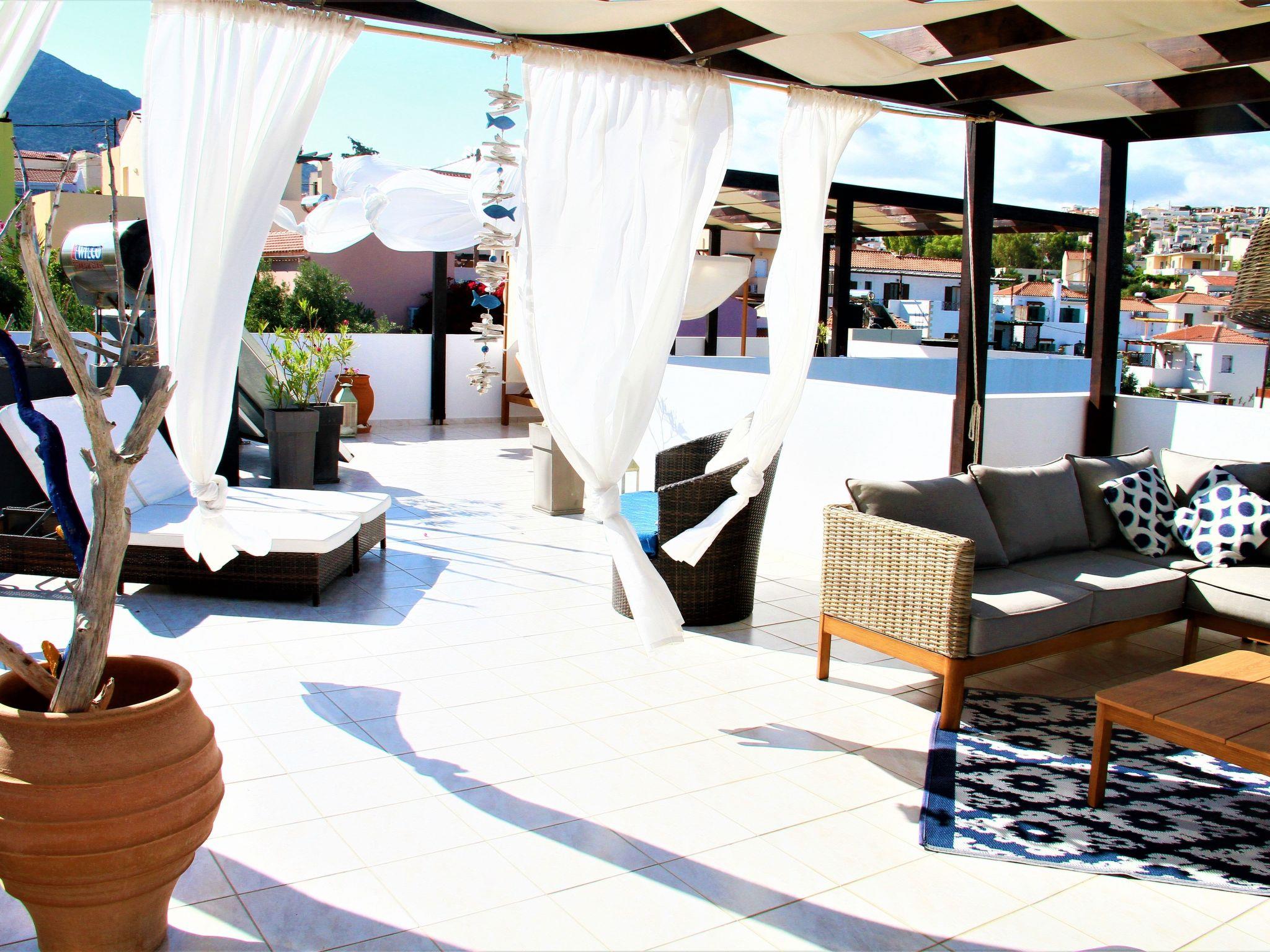 Villa Dionysos - Mediterranean elegance between sea and mountains. Enjoy a magical stay in a place where contemporary design meets Cycladic charm. Perfect for families or groups of friends with a passion for diving, Villa Dionysos is a haven of peace offering breathtaking panoramic views of the sea and the Cretan mountains. This magnificent setting, nestling in a garden of olive trees, promises an unforgettable experience of relaxation and discovery.