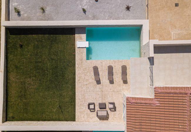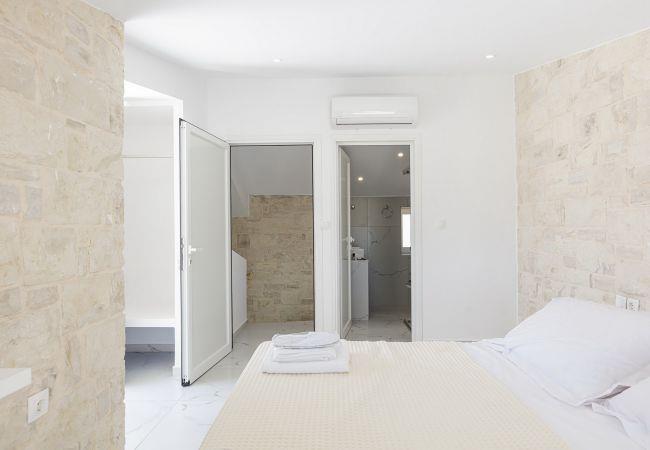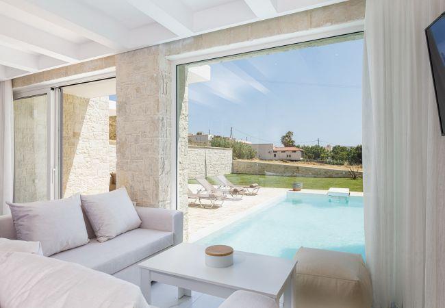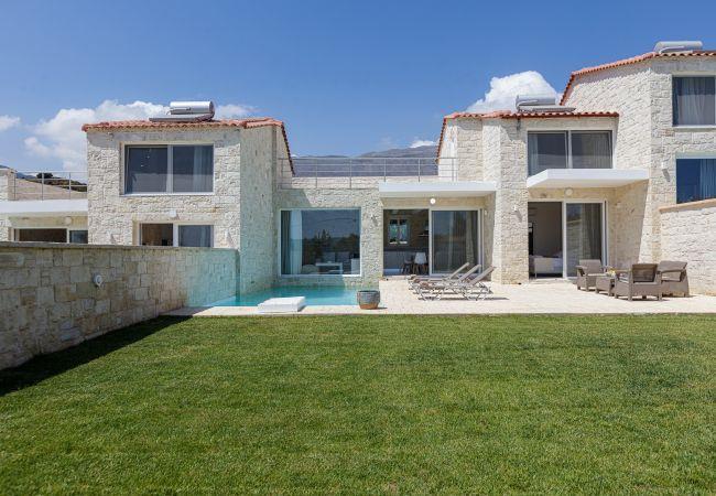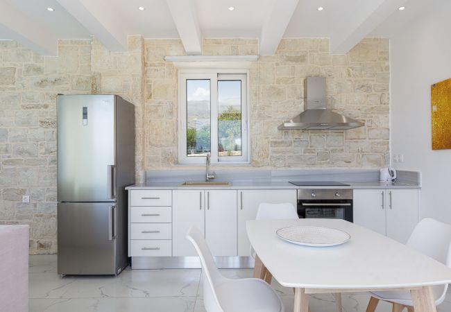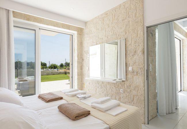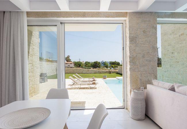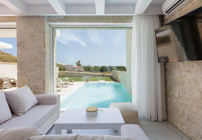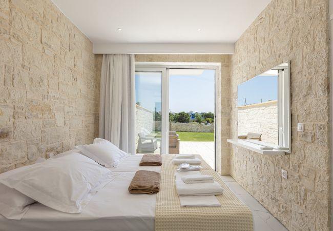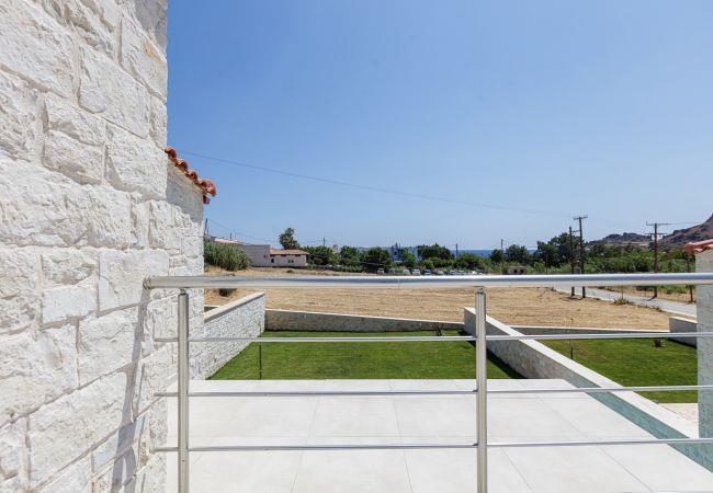Mythos is a newly built villa, covering an area of 100 square meters, situated just 250 meters away from the magnificent sandy beach renowned for its crystal-clear waters in the Damnoni area of Crete. The ground floor of this villa features an open-plan living area with a fully equipped kitchen, a dining table, a comfortable corner sofa, and a spacious 55 smart TV with access to a Netflix account. On this level, there is one bedroom with 2 single beds that can be conveniently converted into a Queen-size bed (1.80 x 2.00 meters) and comes with an en-suite bathroom.