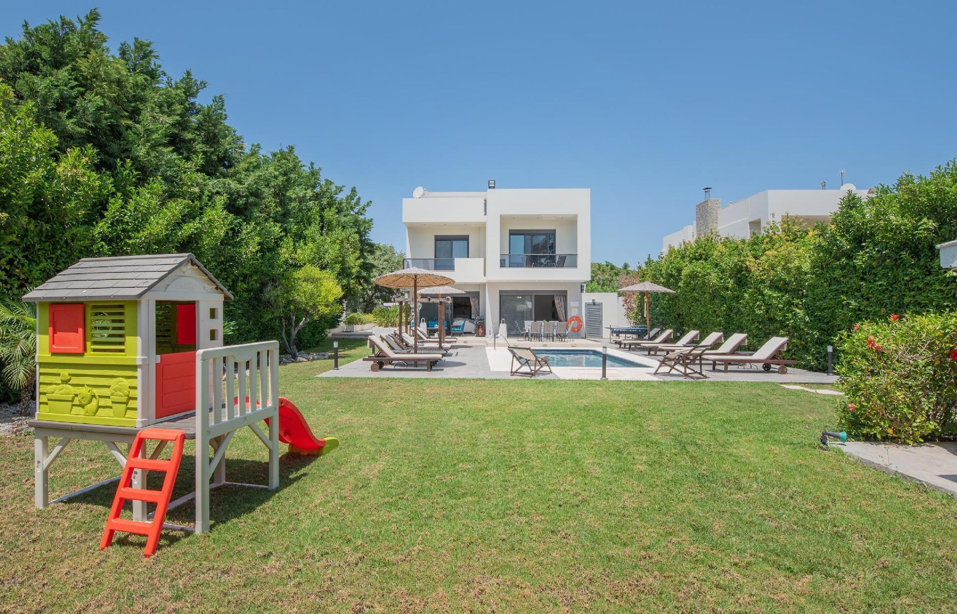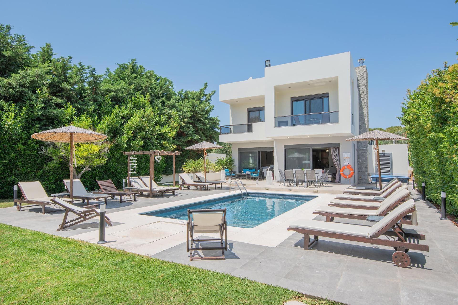 Villa Elena is a modern, luxurious holiday property located in the ideal location of Ixia. It offers a wonderful private swimming pool and an easy access to the beach in an only 5 minute drive. Also, the villa is close to the airport of the island, less than a 15 minute drive. Suitable for families or groups of friends of up to 8 people, this modernly decorated villa combines luxury, comfort and privacy in a central location close to all conveniences available in the area.