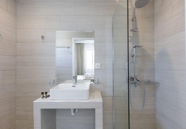 The villa includes a fully equipped, modern kitchen, perfect for preparing meals with local ingredients. Two comfortable bedrooms accommodate up to four guests: one with a king-size bed (1.60 x 2.00 m) and the other with two single beds (0.90 x 2.00 m each), which can be joined to form a queen-size bed (1.80 x 2.00 m) upon request. Both bedrooms feature private en-suite bathrooms with contemporary finishes.