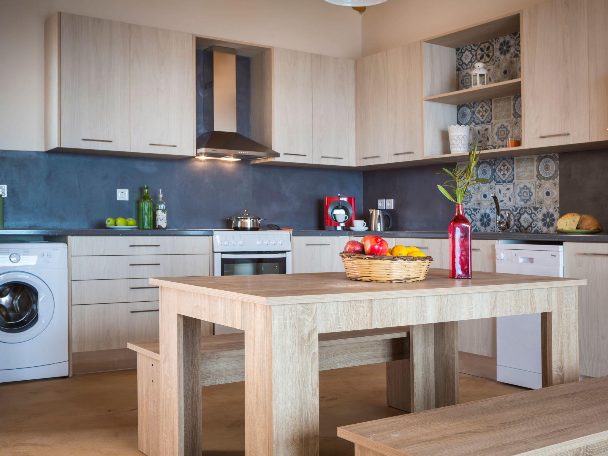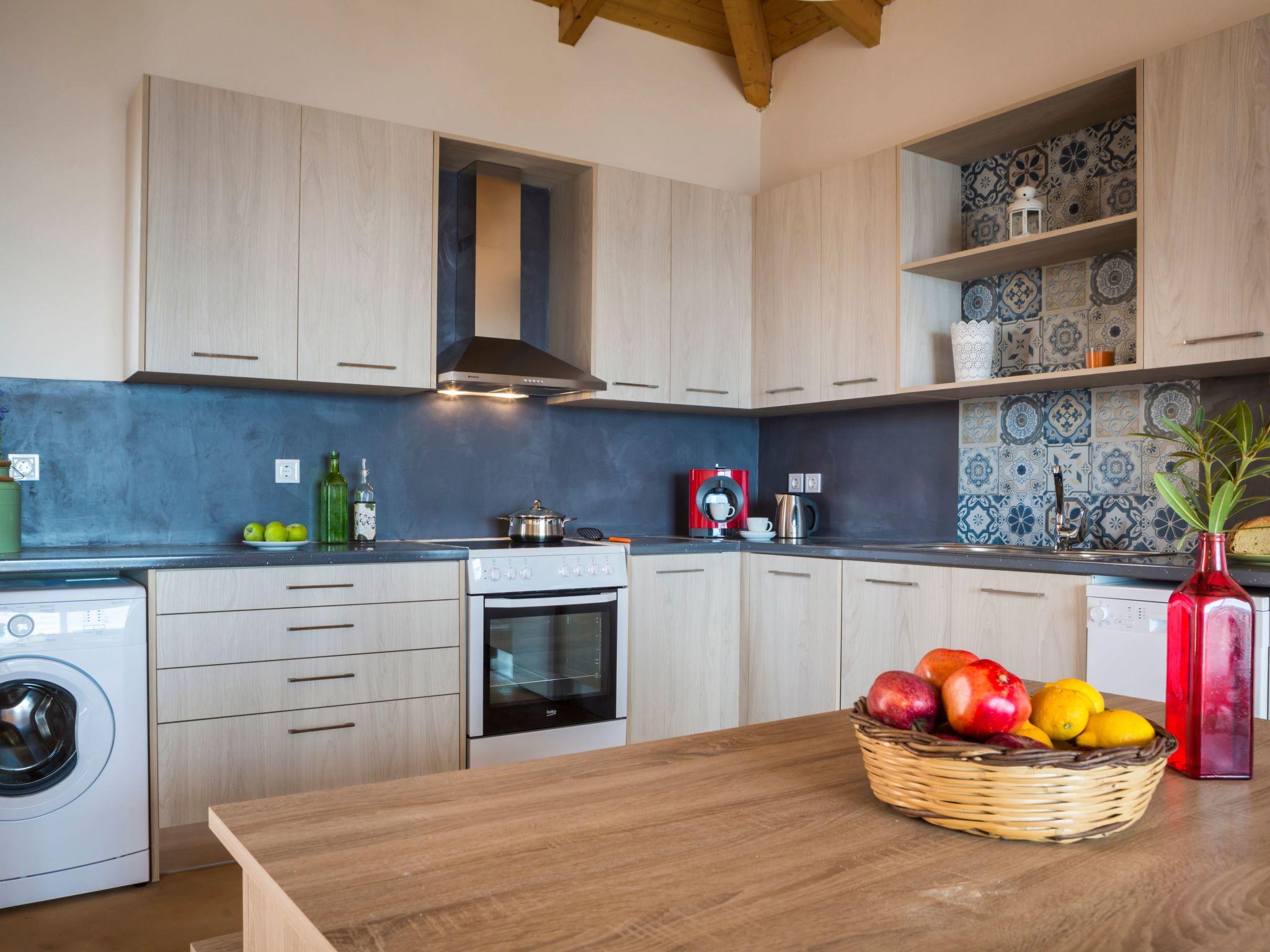 The charm of Magganos Sunset Villas extends to its outdoor area. Guests have exclusive access to a beautifully maintained garden, providing a lush backdrop for relaxation and leisure. The standout feature, a sun-drenched terrace, offers a tranquil setting for guests to unwind, while the glistening outdoor pool invites for refreshing dips under the clear Ionian sky. This outside space is designed for ultimate relaxation, offering a private oasis steps away from your door.