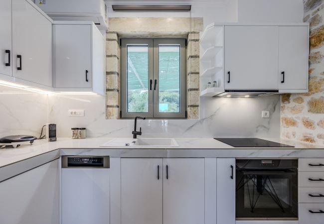 Nestled near the charming and picturesque village of Melidoni, the Melidoni Stone Villa 2 offers an idyllic retreat for up to 4 guests. This single-story, fully-equipped villa spans 50 m², blending comfort and modern amenities with rustic charm. Surrounded by breathtaking views of lush gardens and majestic mountains, the villa promises a serene escape in a family-friendly and rural setting.