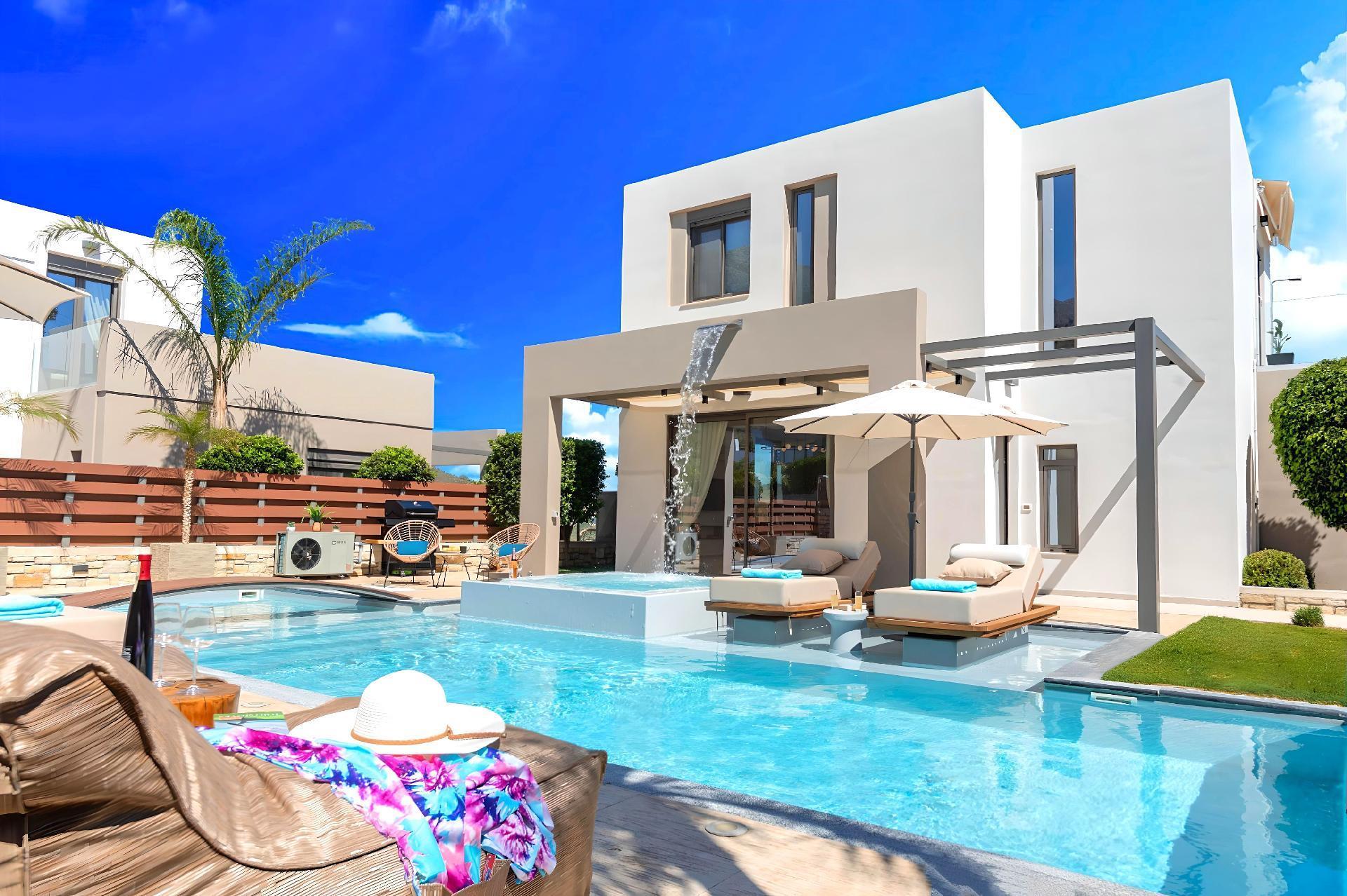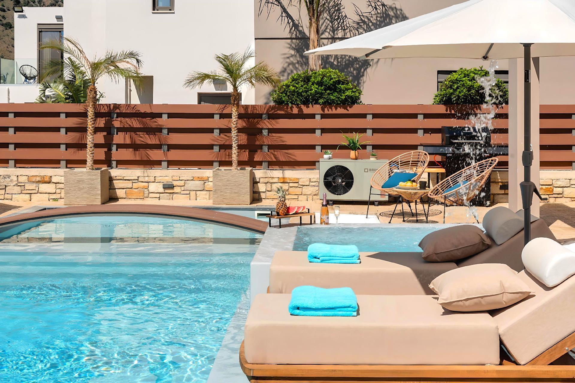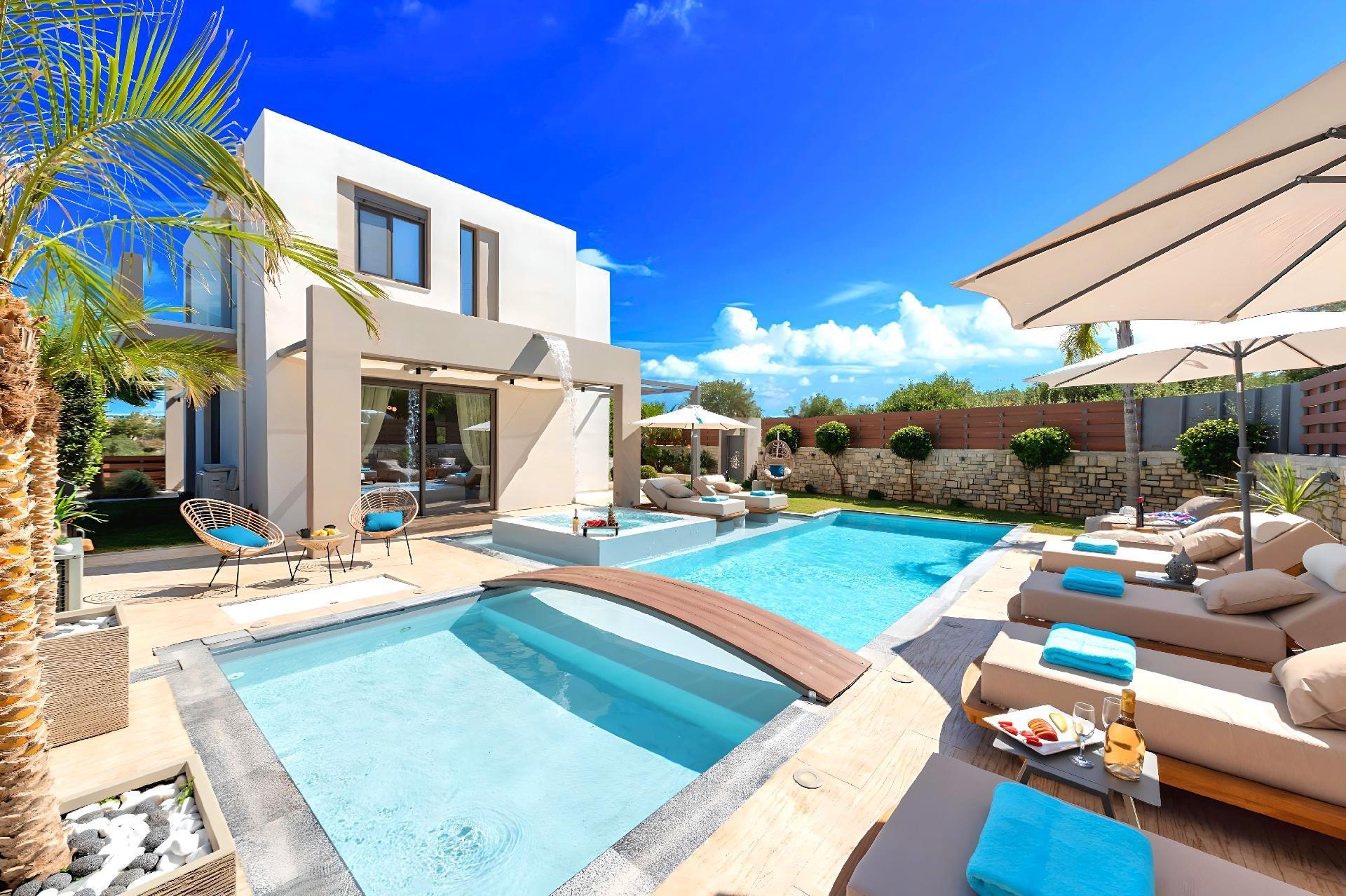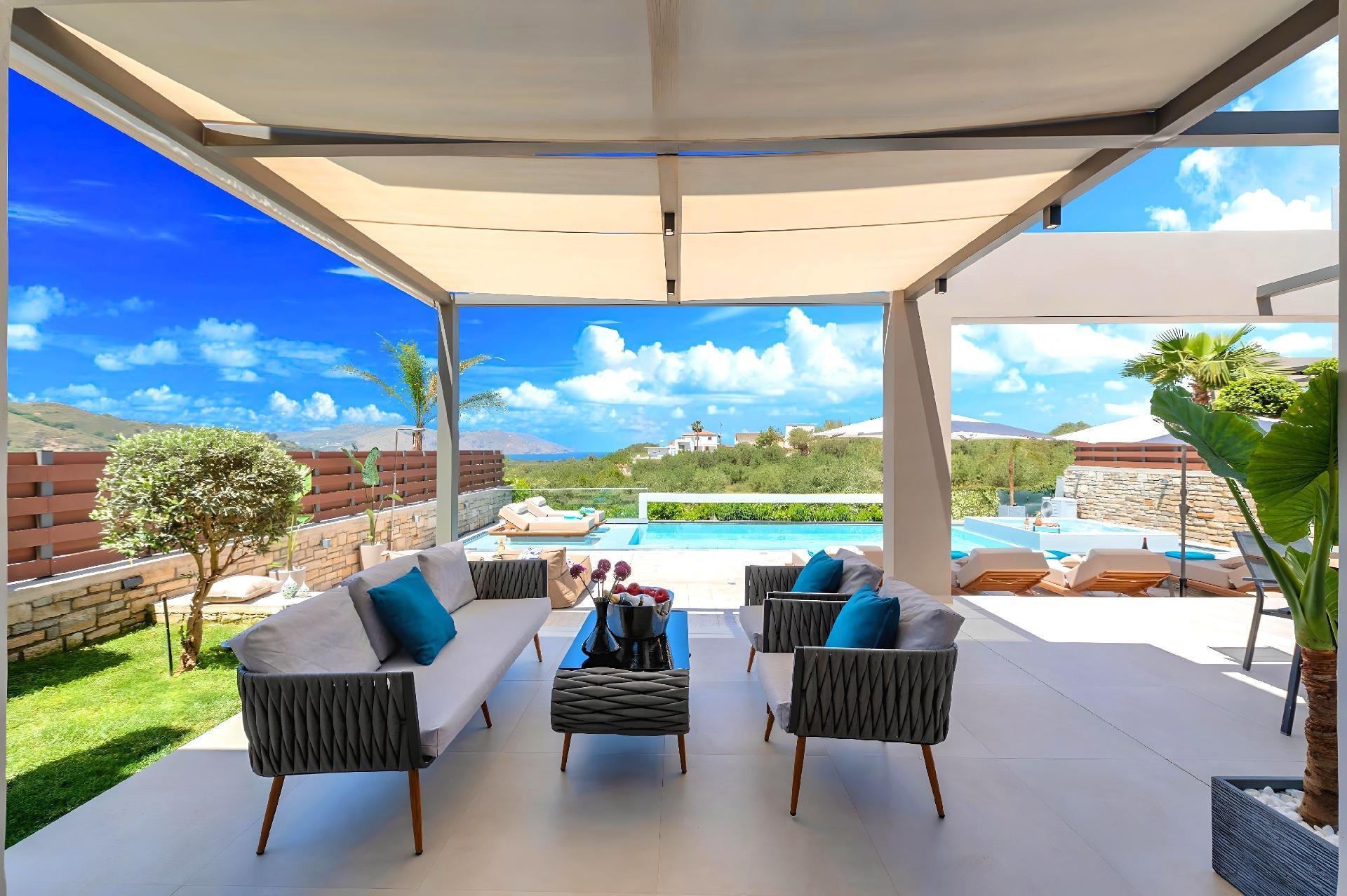 Nuzzled in a gorgeous setting, above the sun kissed beach of Georgioupolis in Crete, Minoas Villas captures the essence of chic and luxurious living only few minutes away from the shimmering sea.Built amphitheatrically with direct sea views, this exceptional built Villas, member of the HotelPraxis Group evokes the island’s Cretan spirit and cosmopolitan charm in its elegant environs while ensuring a holiday beyond comparison.Minoas Villa is one of three villas belonging to a larger complex.Minoas Villas offers guests the opportunity to truly immerse themselves in the Cretan experience.Within easy reach from the island’s famous Kournas Lake and the popular town of Georgioupolis our villas combine a contemporary, modern style with supreme comfort.Built in 2019 our villas offer guests an exclusive, relaxing experience all within the idyllic setting of Greece’s most hospitable island.Our philosophy is simple: to offer first-rate hospitality coupled with unrivalled privacy.All Villas are fully equipped, offering our quests the required convenience in order to enjoy unforgettable relaxing vacations throughout spring, summer and autumn.Minoas Villas is a complex of three villas, ideal for big families, a group of families or a group of friends.Enjoy your vacations with your parents or with the rest of your family members while at the same time preserving your privacy just like at your own home.Our Villas are built one next to the other.