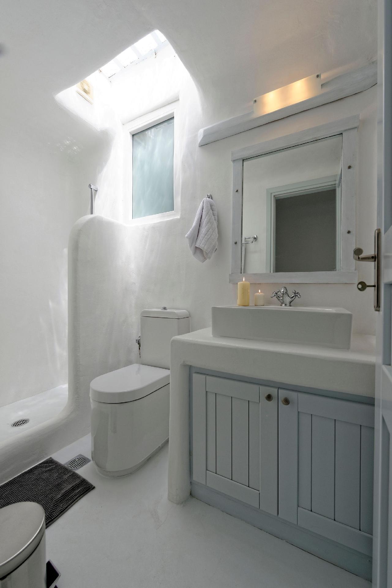 As a part of a complex of autonomous villas it combines traditional mykonian architecture with the luxury of modern conveniences. The ground level hosts the living room, a full equipped open kitchen, a dining area, a bedroom and a bathroom where the underground level hosts four bedrooms, three bathrooms, a small kitchen, a living room and a laundry room.