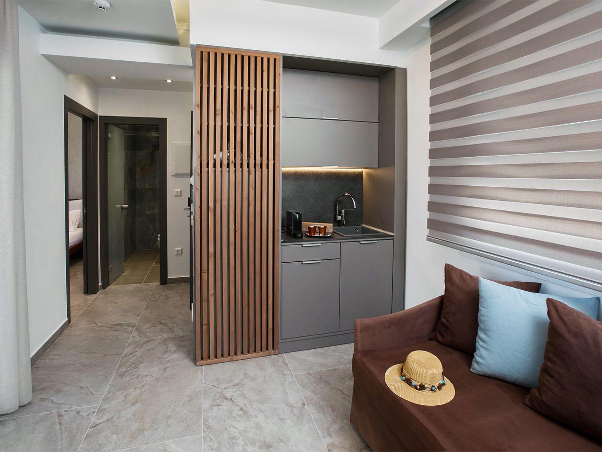 You are in a place where you can enjoy the sea breeze and the best Mediterranean climate. With private access to the beach, direct location to the crystal-clear bay with sunrises and sunsets, surrounded by idyllic countryside and several cycling and hiking trails. The ideal retreat from the hustle and bustle of modern life. Would you prefer to enjoy nature rather than water sports such as water skiing or windsurfing? You can still have a wonderful time in the area surrounding your accommodation, mountain biking, cycling tours, hiking, golf, mini golf, bowling, and so on. In general, you can see, hear, smell, taste and feel Greek culture in Halkidiki. When travelling around the peninsula, you can hardly get enough of the visual attractions that the natural landscape has to offer. Green pine forests alternate with golden flat sandy beaches, green meadows with olive and pistachio trees, steep coasts with extensive vineyards. You will be accompanied by the scent of herbs from the lush vegetation, birdsong and fresh, iodised sea air. For history buffs, there are also numerous museums, archaeological sites and artefacts to explore to familiarise you with ancient Greek culture. Take a trip to Kassandra, where the traditional market takes place, to Meteora, to the Pella theatre and open-air concert, to the ancient archaeological site of Olynthos or to the famous cave in Petralona. Also worth a visit is Athitos, a newly awakened traditional stone-built village with cobbled alleyways and marvellous panoramic spots and bathing bays. The town centre is approx. 700 m away on foot for shopping facilities.