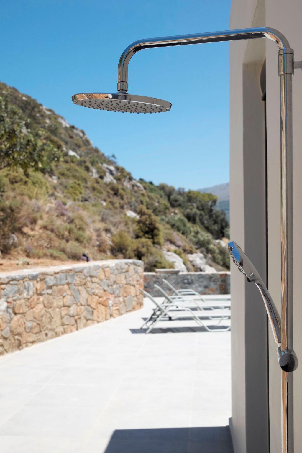 The estate is built on the upper level of the village and faces the North to North-West. This unique spot, offer a breathtaking view of the sunset from the front veranda, that extends to the small island of Dia, North of Crete. The location provides the privacy required to enjoy your much-required vacation, yet it offers easy access to many beautiful beaches on the North of Crete, like Sissi and Malia, as well as worth-visiting attractions, such as Elounda, Spinaloga, Agios Nikolaos and Heraklion.Villa AiresWe are dedicated to providing memorable stays for travelers who seek to enjoy tranquility and luxury in a serene environment. but also the ideal basis for those who want to explore the east of Crete, the Elounda area, Agios Nikolaos town and the beautiful beaches of the South.It’s been only 3 years since Villa Adagio welcomed its fists guests; during all this period we met special people who got really enthusiastic with our services. This is how Villa Aires comes of, following the same philosophy and culture. Our goal was to create a luxurious point of hospitality in an untouched mediterranean landscape next to Vrachasi village. The village of Vrachasi maintains its traditional and authentic aesthetics while being unspoiled from the activities of massive tourism. Aires Villa is located on the foothills of Anavlochos mountain and it offers you a breathtaking panoramic view over the hills of Lasithi and over the cretan sea.The Villa consists of 5 bedrooms, 5 bathrooms and 1 WC in 3 separate levels. On the ground floor there is a living room, a kitchen, an additional WC,one bedroom with an ensuite bathroom. On the first level there are two bedrooms and one more bedroom with an ensuite bathroom. The underground floor there is a detached guest house with an ensuite bathroom.The 50m2 infinity pool is eco-friendly with salt-electrolysis and it is located on the higher floor of this property offering an amazing experience of swimming and relaxing, with an incredible view.