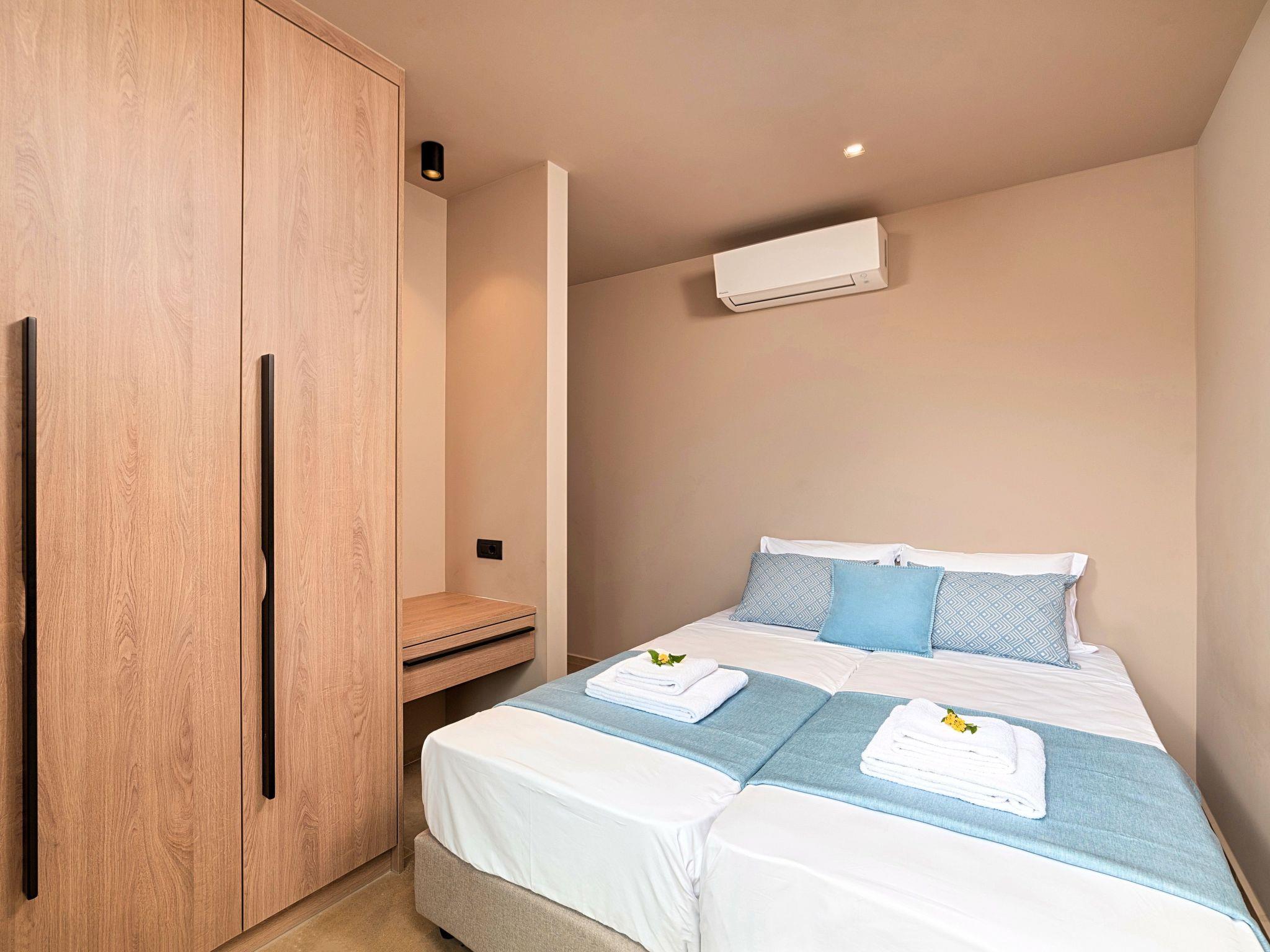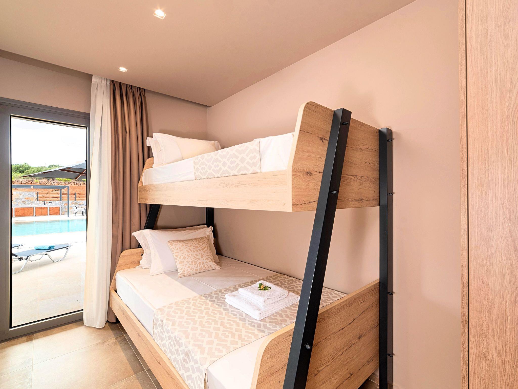 Alpha Sissi Lux VillaFacilitiesGround floor* A bedroom with two single pushed together beds and private bathroom.* A bedroom with two single pushed together beds and private bathroom Upper floor* A living room with a large corner sofa (can accommodate two beds) and direct access to the terrace and the pool area.* Smart TV at the living room* Large Kitchen / dining area with an oven, a fridge, a coffee maker, tea facilities, a juicer, a toaster and a dish set.* A bedroom with a queen-size double bed. * A second bedroom with two single beds pushed together. * A third bedroom with a two bunk beds. * A large bathroom with shower.* Washing machine / Dryer* Large terrace overlooking the swimming pool* Air-conditioning in all areas.* Free WiFi internet access.* Outdoor dining set (table with chairs).* Iron and ironing board.* Safe deposit box.* Hair dryer.* Linen and towels.* Toiletries.* Swimming pool towels.* Baby cot.* High chair for children.* Towels and bed linen changed and cleaned every 3 or 4 days.* Private parking area.* Direct access to the swimming pool area.* Private swimming pool.* Sun lounge area with sun beds and umbrellas.* BBQ with cooking and dining area next to the swimming pool.Omega Sissi Lux VillaFacilitiesGround floor* A bedroom with two single pushed together beds and private bathroom.* A bedroom with two single pushed together beds and private bathroom Upper floor* A living room with a large corner sofa (can accommodate two beds) and direct access to the terrace and the pool area.* Smart TV at the living room* Large Kitchen / dining area with an oven, a fridge, a coffee maker, tea facilities, a juicer, a toaster and a dish set.* A bedroom with a queen-size double bed. * A second bedroom with two single beds pushed together. * A large bathroom with shower.* Washing machine / Dryer* Large terrace overlooking the swimming pool* Air-conditioning in all areas.* Free WiFi internet access.* Outdoor dining set (table with chairs).* Iron and ironing board.* Safe deposit box.* Hair dryer.* Linen and towels.* Toiletries.* Swimming pool towels.* Baby cot.* High chair for children.* Towels and bed linen changed and cleaned every 3 or 4 days.* Private parking area.* Direct access to the swimming pool area.* Private swimming pool.* Sun lounge area with sun beds and umbrellas.* BBQ with cooking and dining area next to the swimming pool.