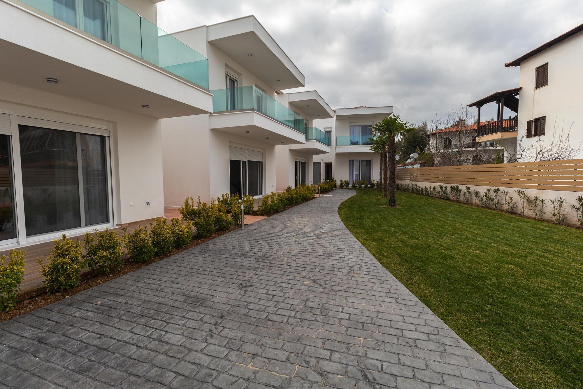 Newly built villa complex in the heart of the village of Ormos Panagias, just a few meters from the sea. Enjoy the magnificent view of the small fishing port and stroll along the promenade. The eight modern vacation homes are comfortably furnished and equipped with dishwashers, washing machines, and air conditioning, as well as a furnished terrace and balcony. Within the beautiful gardens, there is a heated communal pool with a jacuzzi and sun terrace. The restaurant, located directly on the waterfront, will spoil you with exquisite specialties at any time of the day (for a fee). The beautiful sandy beach of Trani Ammouda with its turquoise waters is just a few minutes' walk away. Ormos Panagia is a small village in the northeastern part of the Sithonia peninsula. It has a small harbour used by fishing boats. The area is very popular with tourists in summer. Excursion boats depart from here for trips along the holy mountain of Athos. Highlights: • Wi-Fi Note - • Not suitable for people with reduced mobility • Charges for additional water use and laundry services vary based on usage and are payable on site.