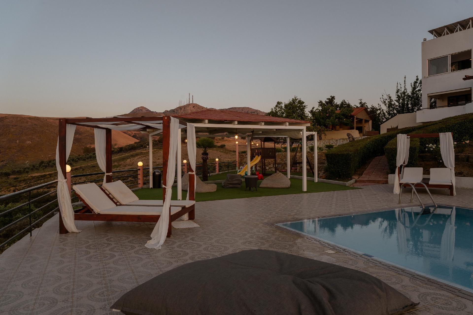 This unique and impressive countryside villa is situated on a hillside just 7 km outside the historic town of Rethymno, on Crete's picturesque north coast in a 2000sq. meters field. With its privileged location, perched on a leafy hillside, this villa will undoubtedly appeal to everyone seeking stunning views, high levels of privacy and luxury, not to mention the convenience of being a short drive from the centre of Rethymno town and the amazing beaches on the south coast. With its contemporary interior and highly practical and generously proportioned exterior space, it is aesthetically pleasing to the eye from whatever angle you favor your holiday choice from.