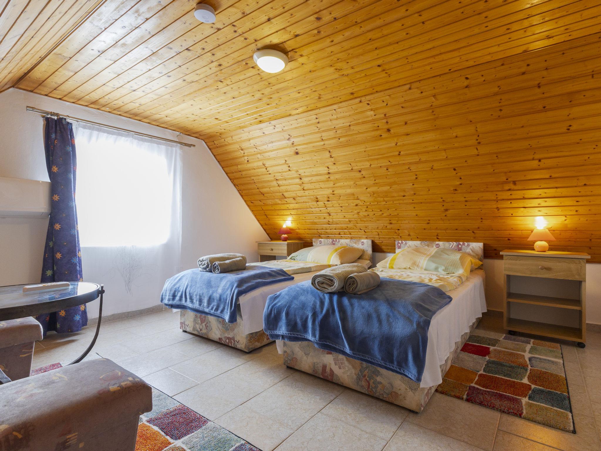 Balatonalmádi 16 km from Balatonfüred: Beautiful single-family house "Annemarie". 2 km from the centre of Balatonalmadi, on the outskirts, 7 km from the centre of Balatonfüzfö, 17 km from the centre of Balatonfüred, on a slope, in the residential district, 2.4 km from the lake, 2.8 km from the beach. Private: property 800 m2 (fenced) with trees, meadow, swimming pool heated (6 x 4 m, depth 120 cm, seasonal availability: 15.May. - 30.Sep.). Children's playground (slide). In the house: table football. 200 m long bumpy motor access. Stepped path to the house. Parking (for 3 cars) on the premises. Grocery 1 km, supermarket 2 km, grass beach 2.4 km, thermal baths "Pápai Thermal Bath" 62 km. Tennis 2 km, riding stable 2 km, cycle lane 2 km, children's playground 2 km. Nearby attractions: BalatoniBob Theme Park 5 km, Veszprém Zoo 15 km, Balatonfüred Annagora Aquapark 18 km, Tihany 24 km, Balaton Theme Park Nosztori 18 km, Koloska Valley 18 km.