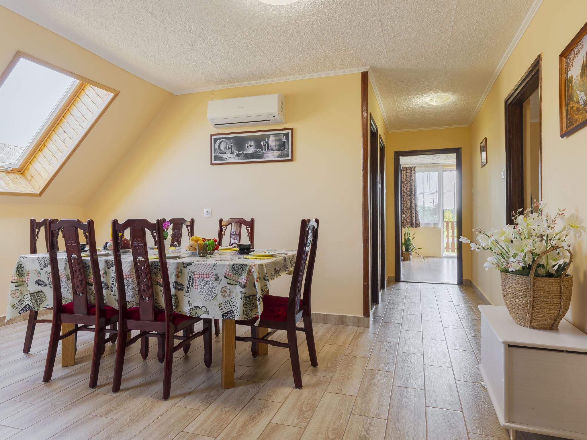 "Pajtas 1", 4-room apartment on the upper floor. Spacious and bright, renovated in 2022, comfortable and cosy furnishings: living room with satellite TV and air conditioning. Exit to the balcony. 2 double bedrooms, each room with 1 french bed (180 cm, length 200 cm). 1 room with 2 beds (90 cm, length 200 cm). Open dining room with air conditioning. Open kitchen (oven, dishwasher, Gas stove, 4 gas rings, toaster, kettle, microwave, freezer). Bath/WC, sep. WC. No heating option. Balcony furniture, barbecue (portable), deck chairs (2), covered balcony. Facilities: washing machine, mosquito net. Internet (WiFi). Parking at the house. MA19019212