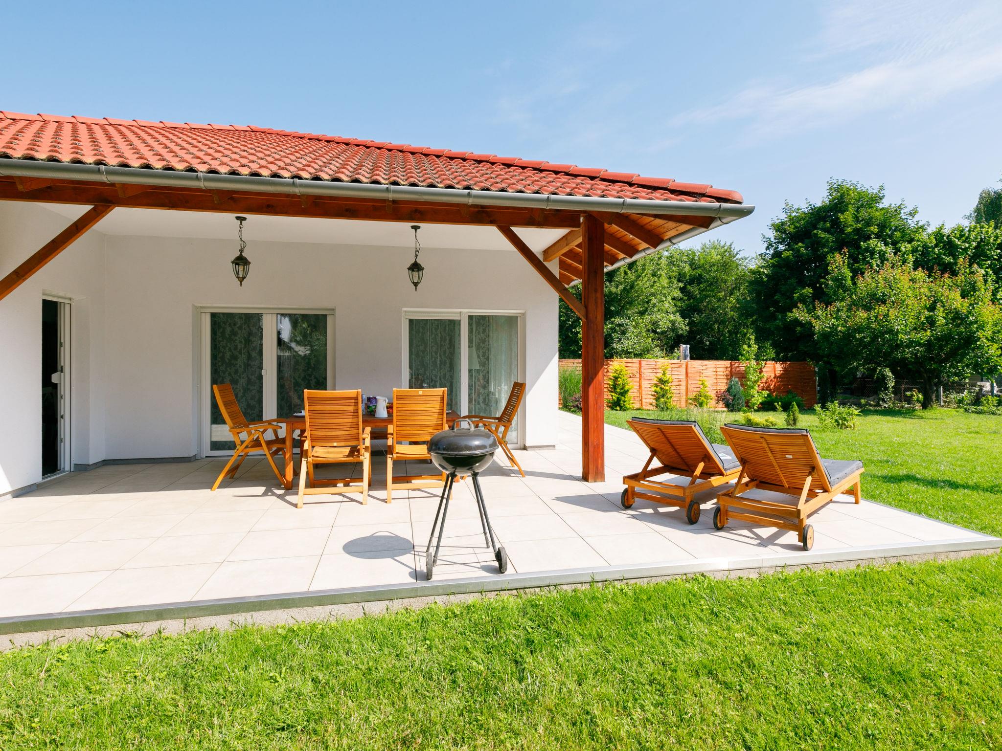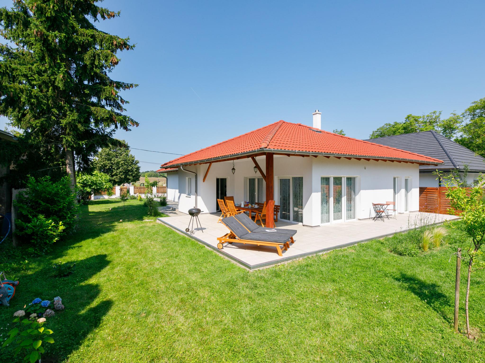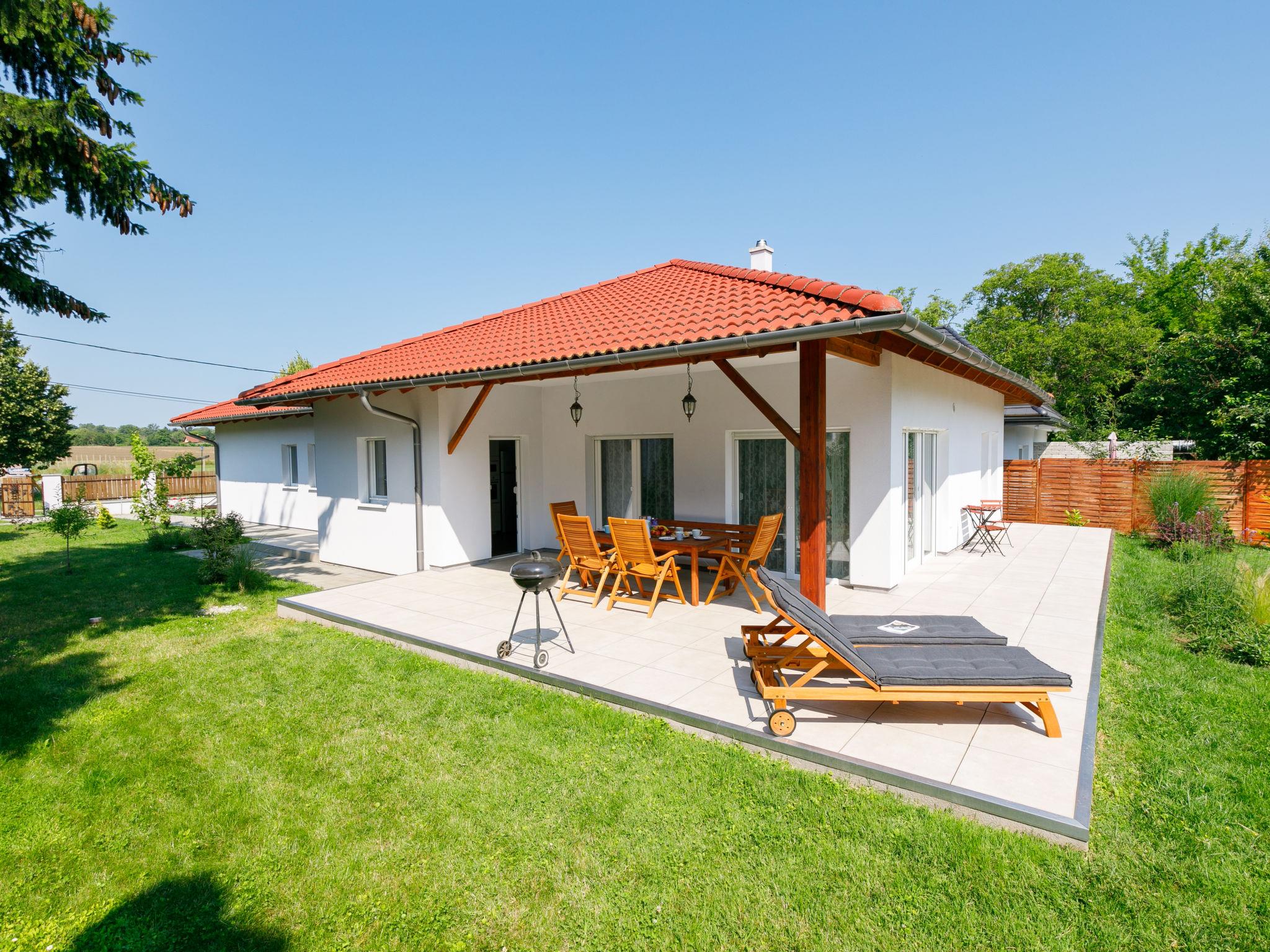 Balatonöszöd 28 km from Siófok: Beautiful house "Sunstreet", built in 2021. In the resort, in a quiet, sunny position, 800 m from the lake, 800 m from the beach. In the house: WiFi, washing machine. Grocery 800 m, supermarket 3 km, restaurant 800 m, bar, bakery 1.8 km, café, bicycle rental 1.5 km, bus stop 300 m, railway station 1.8 km, grass beach 800 m, thermal baths "Csiszta" 30 km. Surf school 1 km, sailing school 3 km, tennis 4 km, riding stable 12 km, cycle lane 600 m, children's playground 600 m, fishing possibilities 800 m. Nearby attractions: Hévíz 60 km, Siófok 28 km, Koröshegyi Lavender Visitor Center 10 km, Bella Theme Park 35 km, Kincsesréti Fishing Lake 6 km.